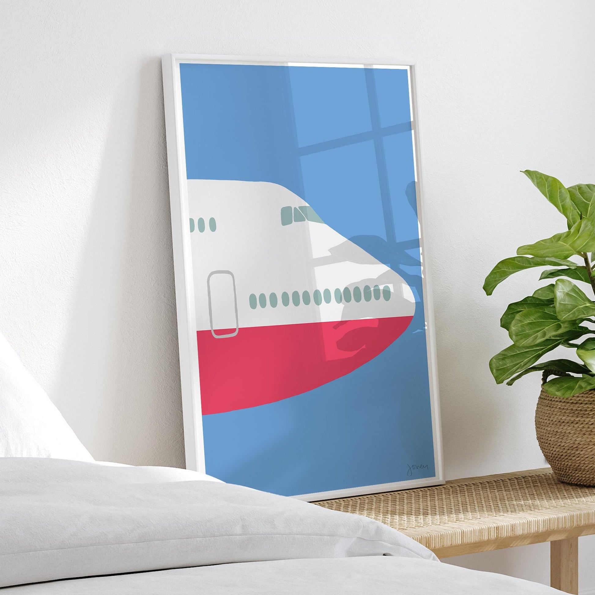 Capture the timeless excitement of air travel with my 747 "Plane Nose" airplane Art Print. Inspired by the news of the last 747 rolling off Boeing's production line, this artwork pays homage to an era when flying was filled with elegance, evoking a sense of adventure.