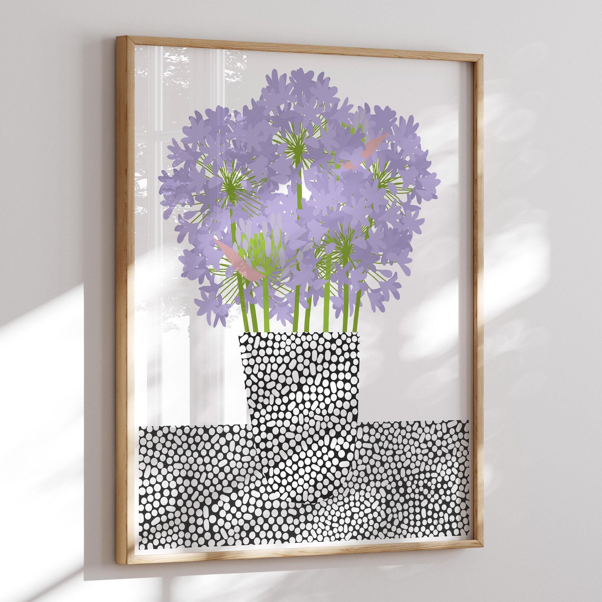 Add joy to your space with my Abstract Agapanthus Still Life art print. Inspired by the striking beauty of the agapanthus plant that sat outside our old home in San Francisco, this artwork celebrates the allure of nature's colors.