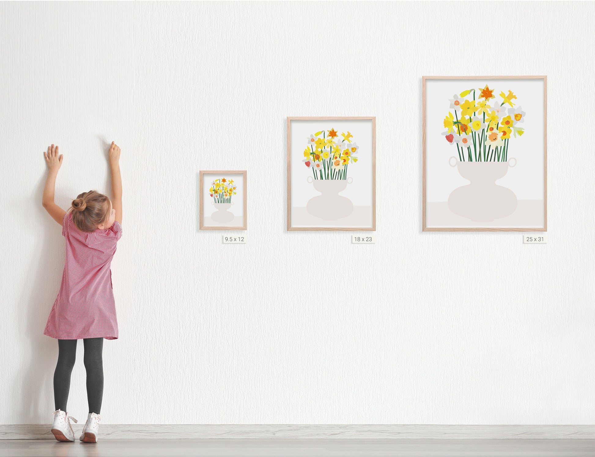 Celebrate the beauty of nature with this "Vase of Daffodils Art Print." Inspired by the vibrant yellow daffodils in our backyard, this artwork captures the joy of the arrival of spring.