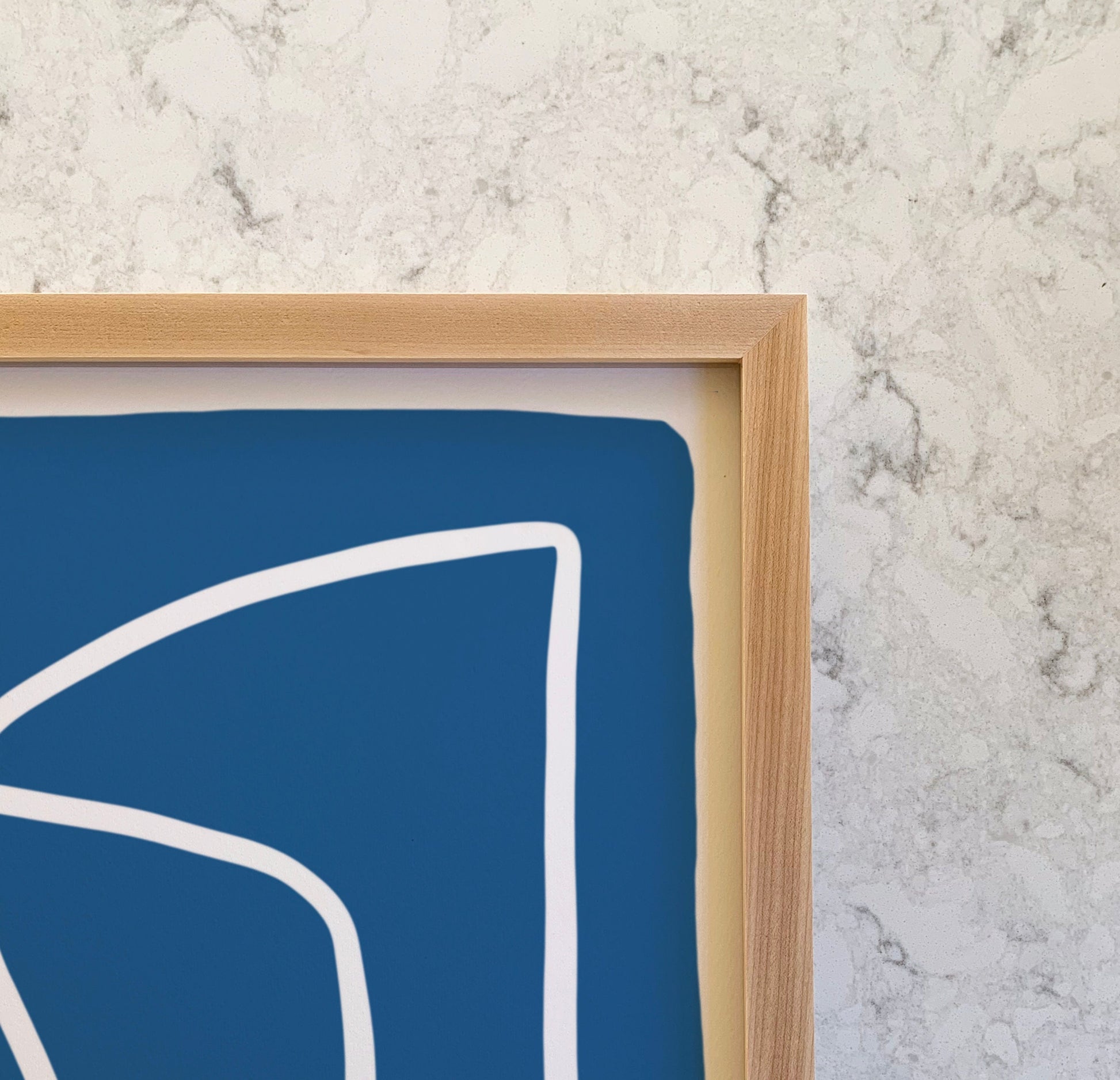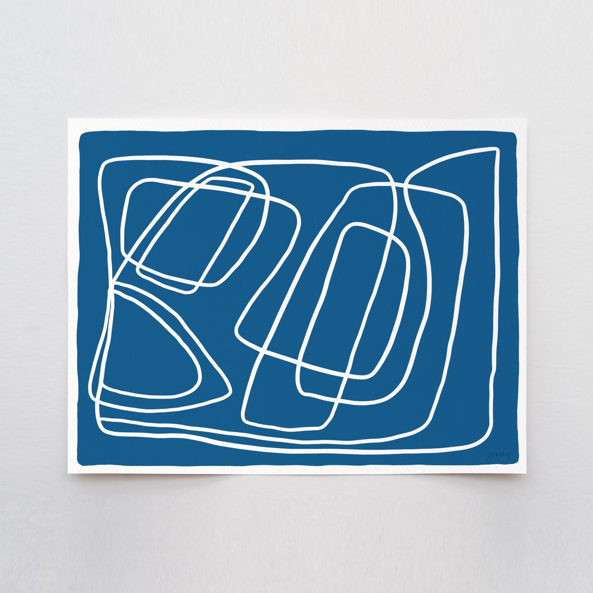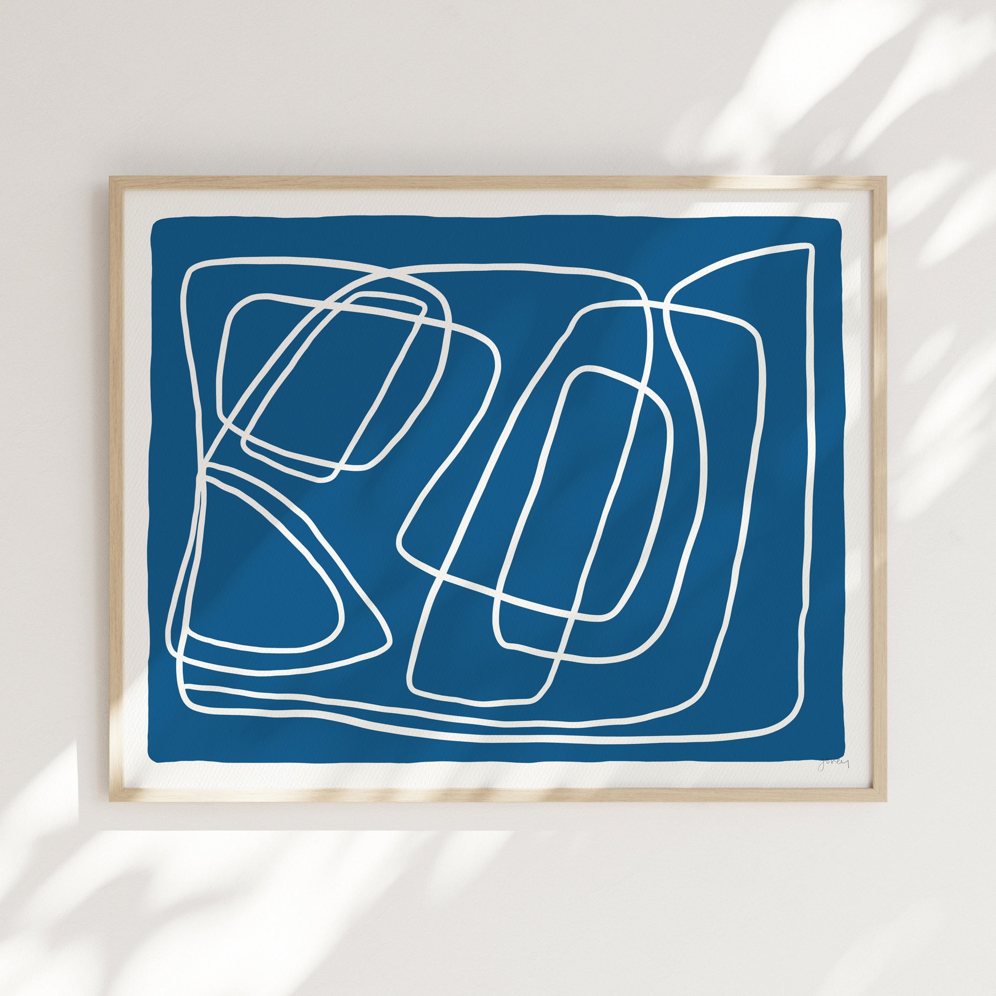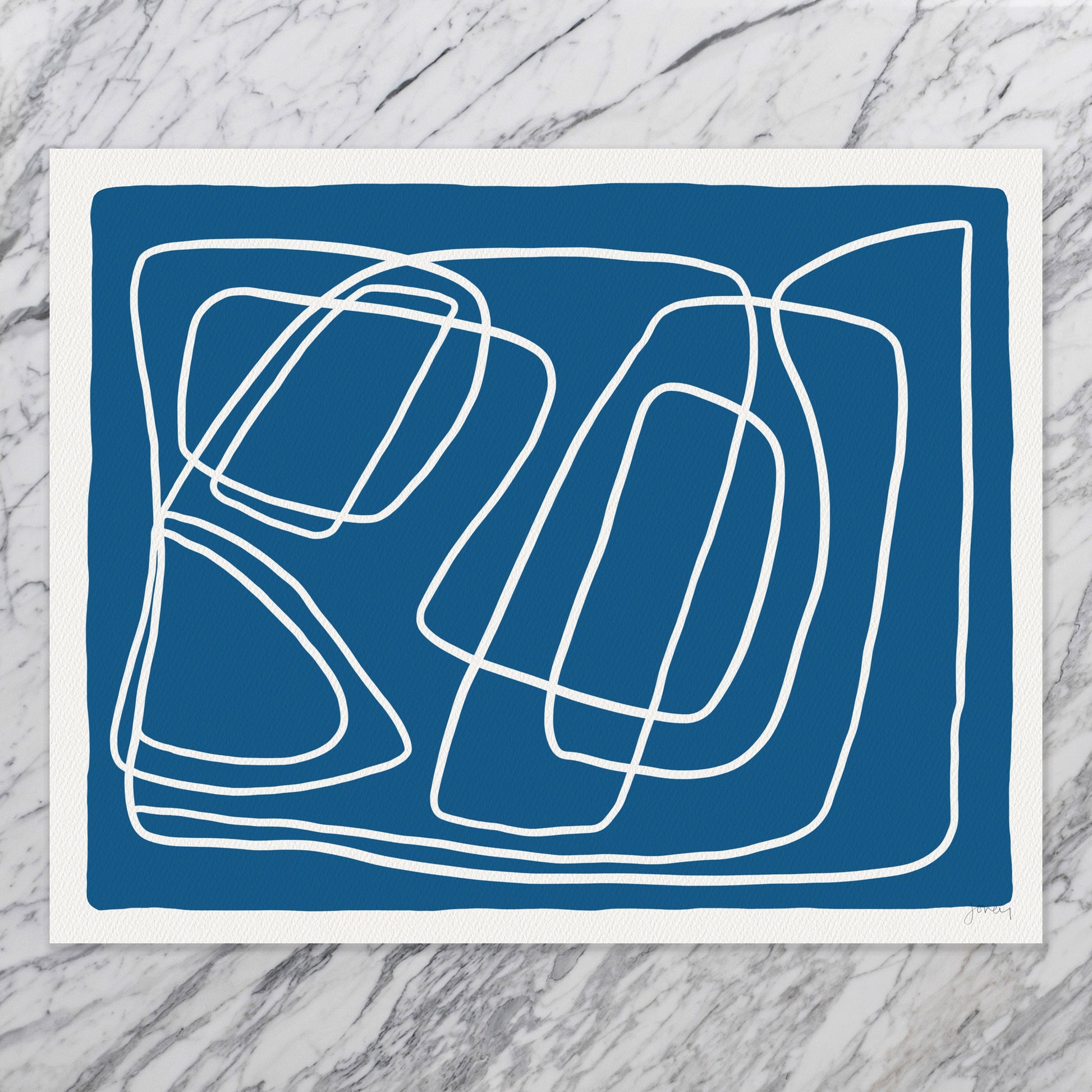 Printed on high-quality archival paper, this art print beautifully showcases the interplay of white lines against a calming blue backdrop. Each print is meticulously crafted, signed, and printed by me, ensuring its authenticity and adding a personal touch.