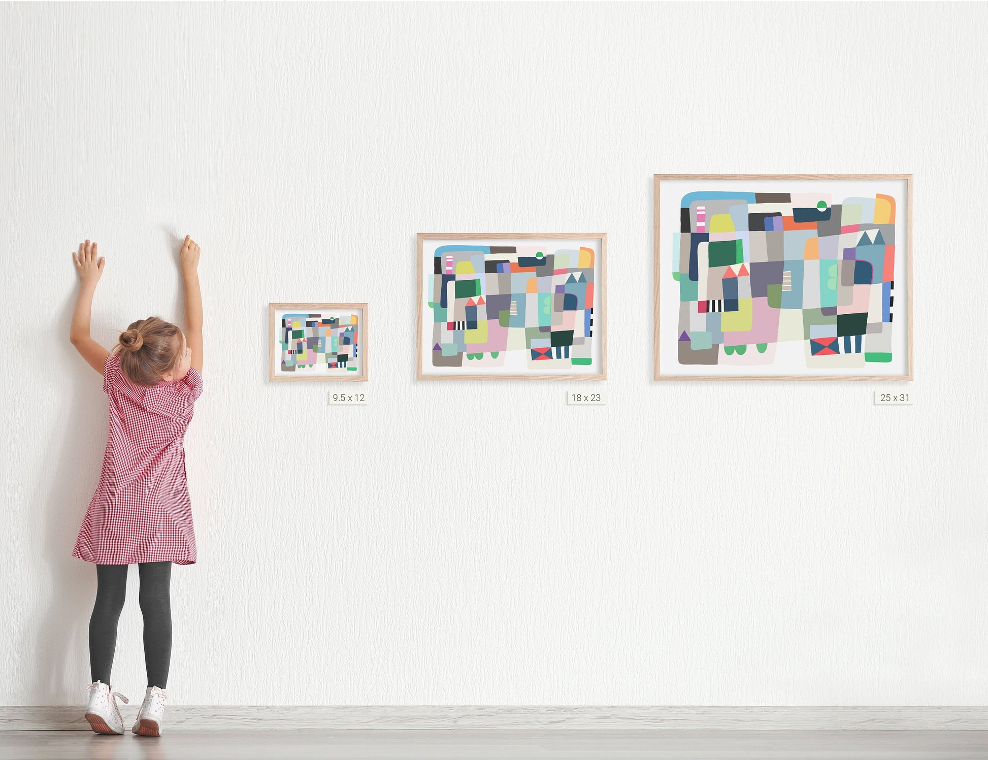 Embrace the calming world of colors and shapes with this engaging Colorful Shapes Abstract Art Print. Perfect for art enthusiasts, interior decor enthusiasts, or anyone seeking a visually captivating focal point for their living spaces.