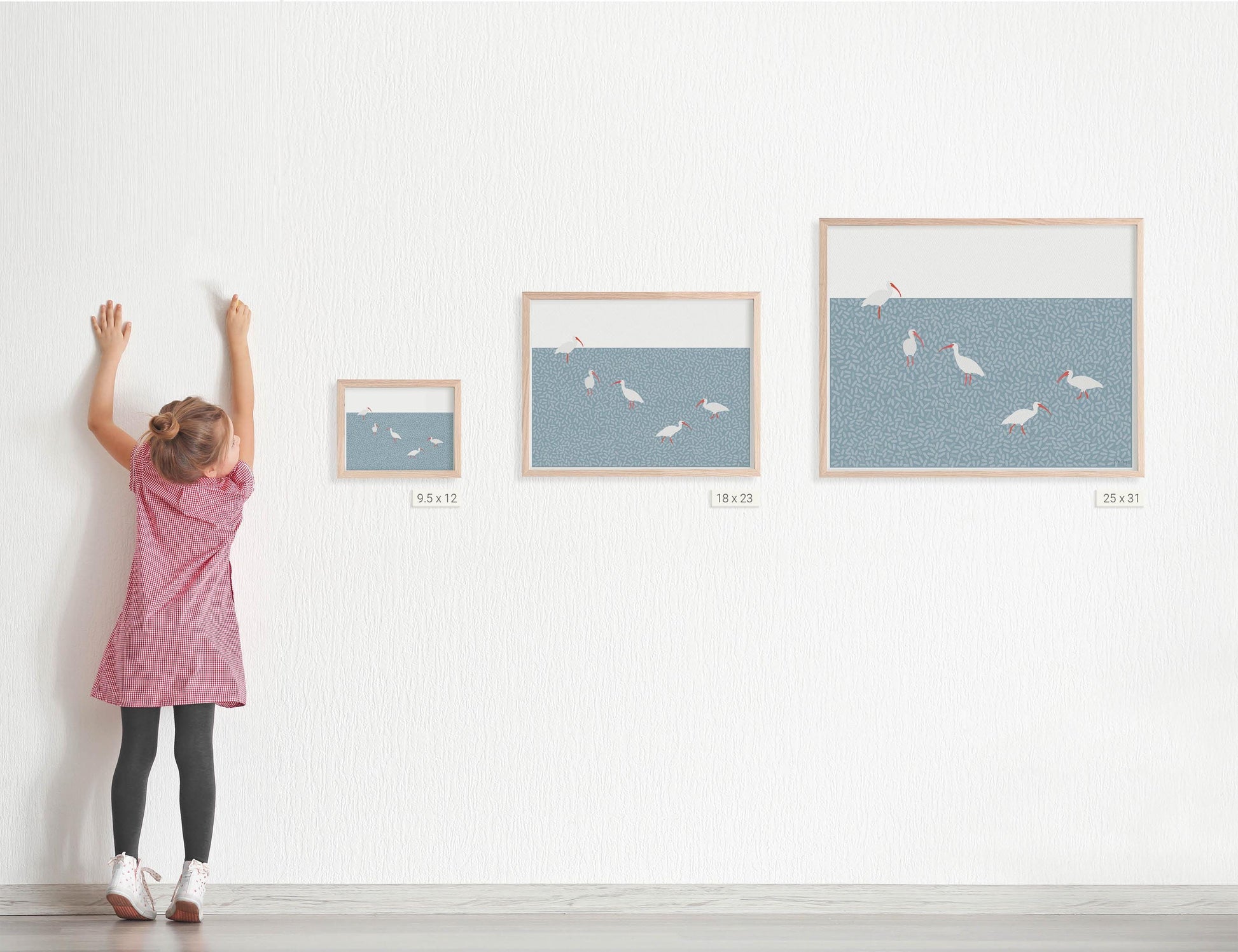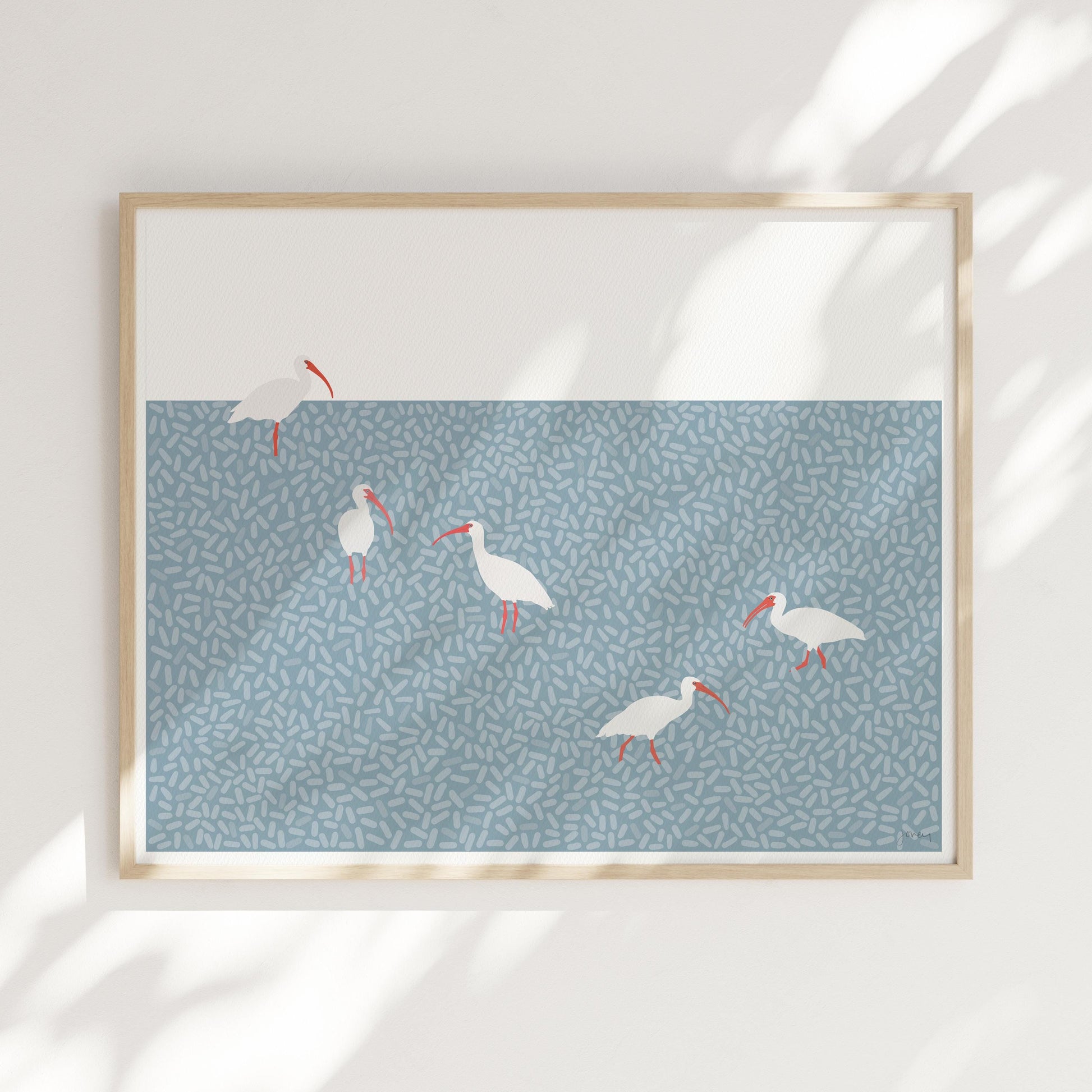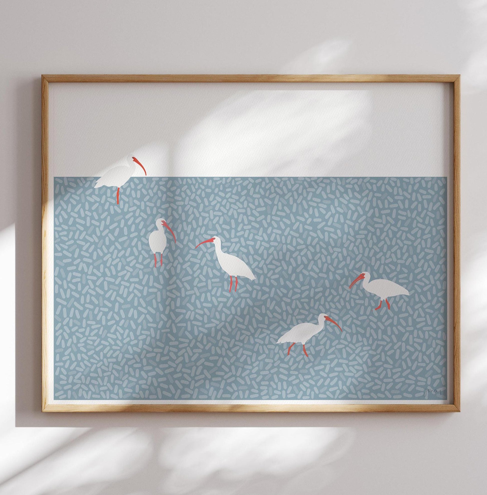 Celebrate the serene beauty of the wetlands with my “American White Ibis” art print. Featuring a group of white ibis that I saw on a recent trip to the Florida Everglades. This piece captures the quiet majesty of their distinctive down-curved beaks.