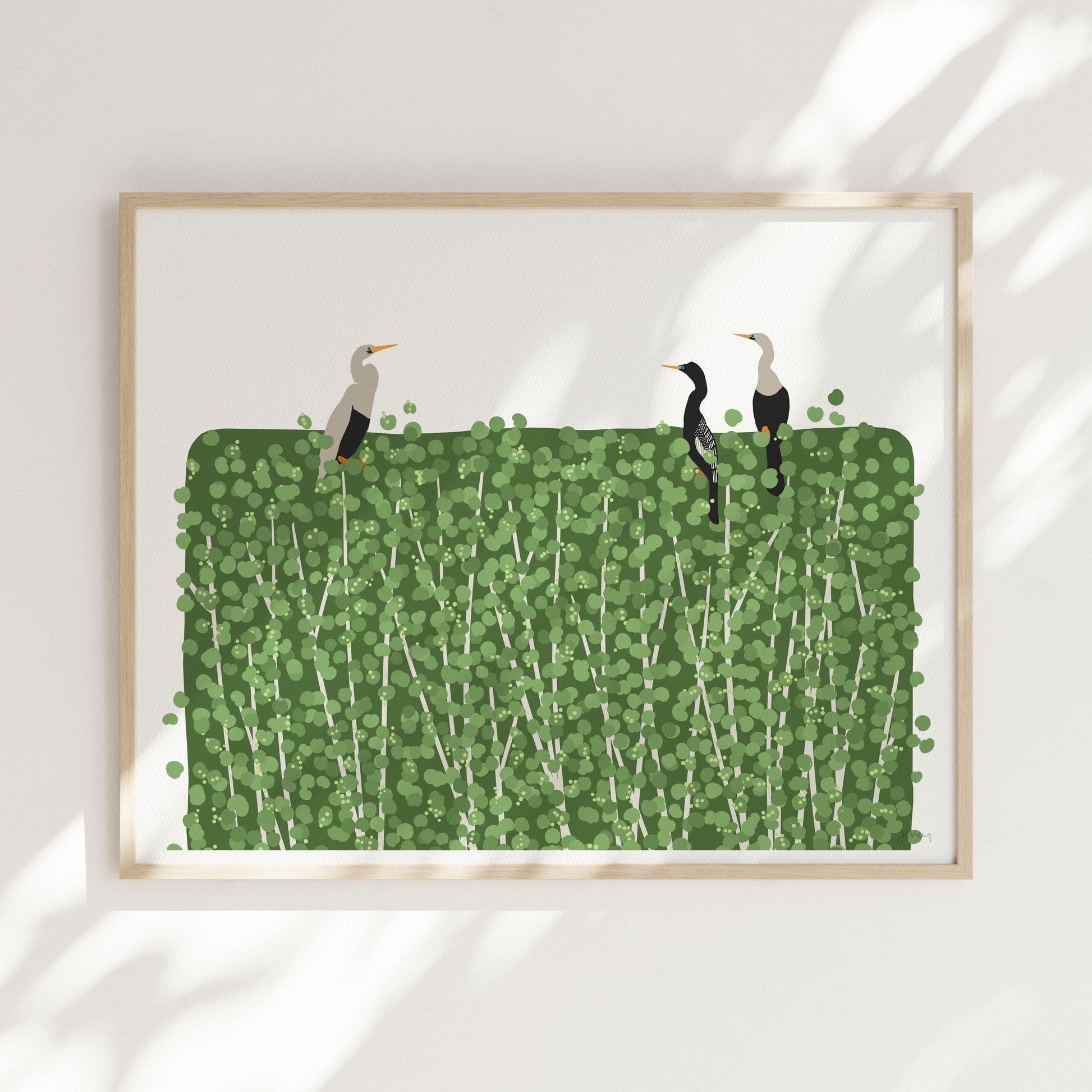 Add a timeless, nature-inspired element to your decor with the “Anhinga Birds” art print.