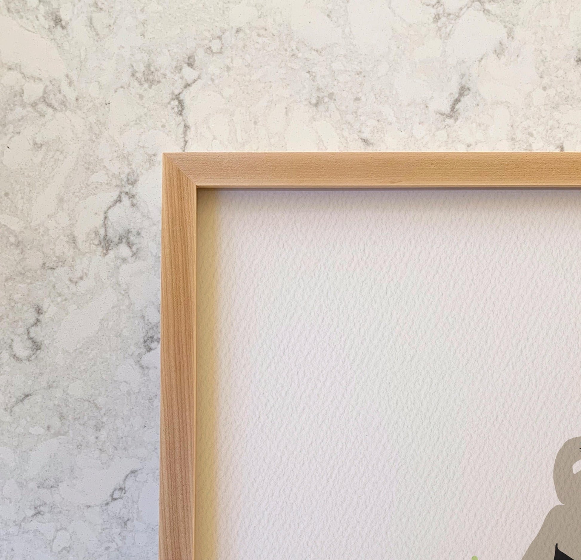 Choose from unframed or framed options to fit your style. My solid maple frames are sustainably sourced and arrive ready to hang, while unframed prints fit standard frames for easy customization. Custom sizes are available upon request.