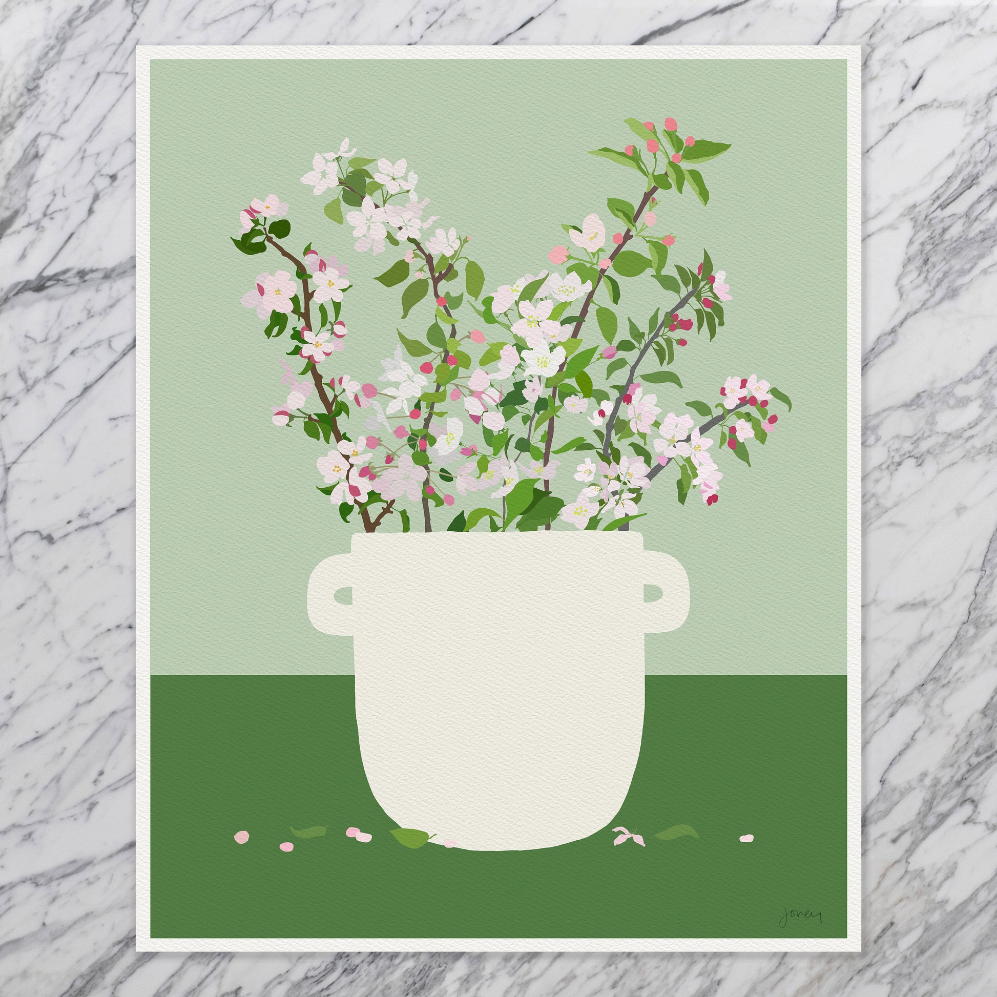 Enjoy springtime year round with my calming "Apple Blossoms Still Life Art Print." This floral still life was born from my fascination with the transformative journey of apple blossoms into apples.