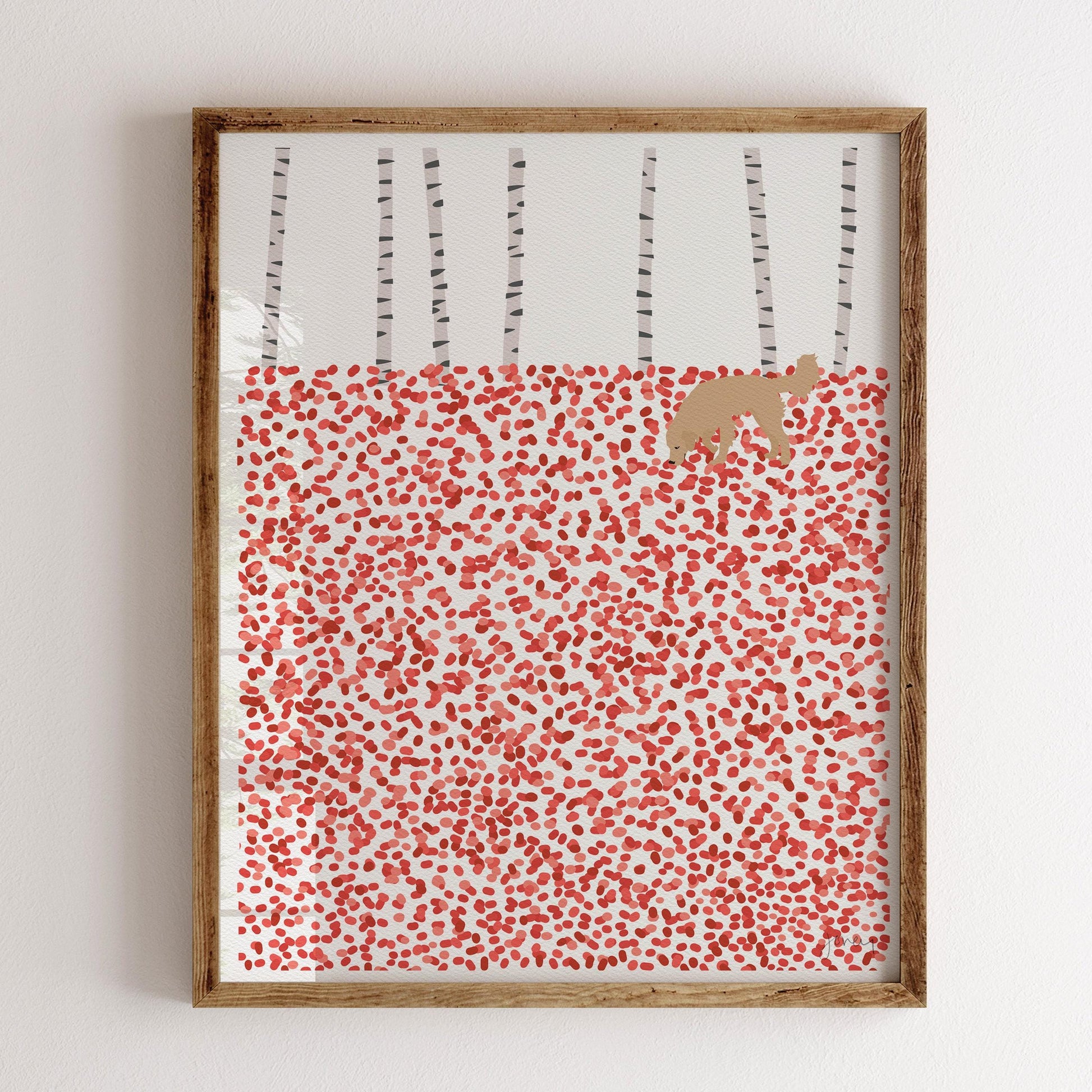 Bring the joy and warmth of a golden retriever into your home with our "Autumn Leaves with a Golden Retriever" art print, a heartwarming addition to any dog lover's decor.