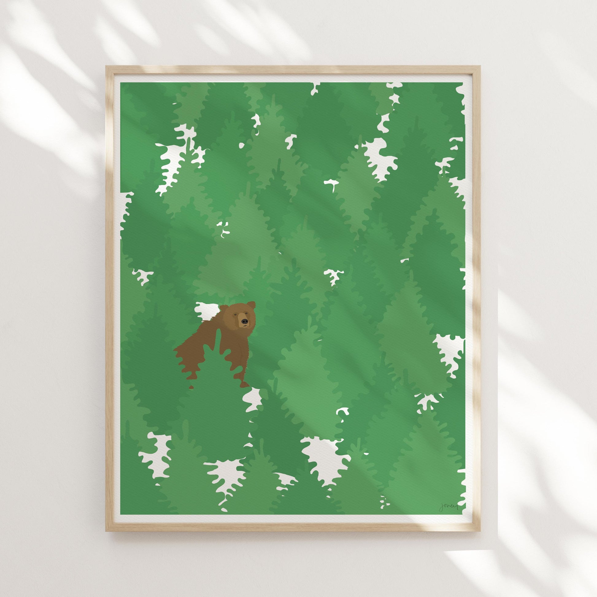 Bring the quiet beauty of the forest into your home with the “Bear in Forest” art print—a delightful and calming piece for modern spaces.