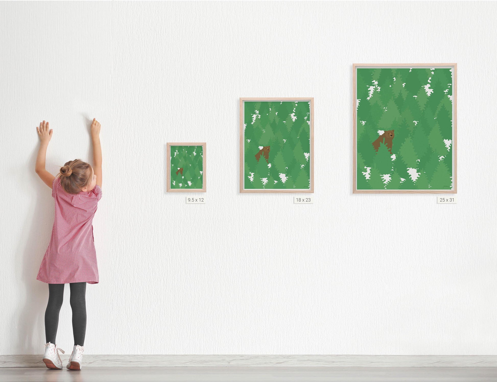 Introduce the enchanting charm of the wilderness to your space with my “Bear in Forest” art print. Featuring a serene depiction of a bear amidst a tranquil forest backdrop, this artwork blends natural simplicity with modern elegance, making it a perfect addition to a child's room or any nature-inspired décor.
