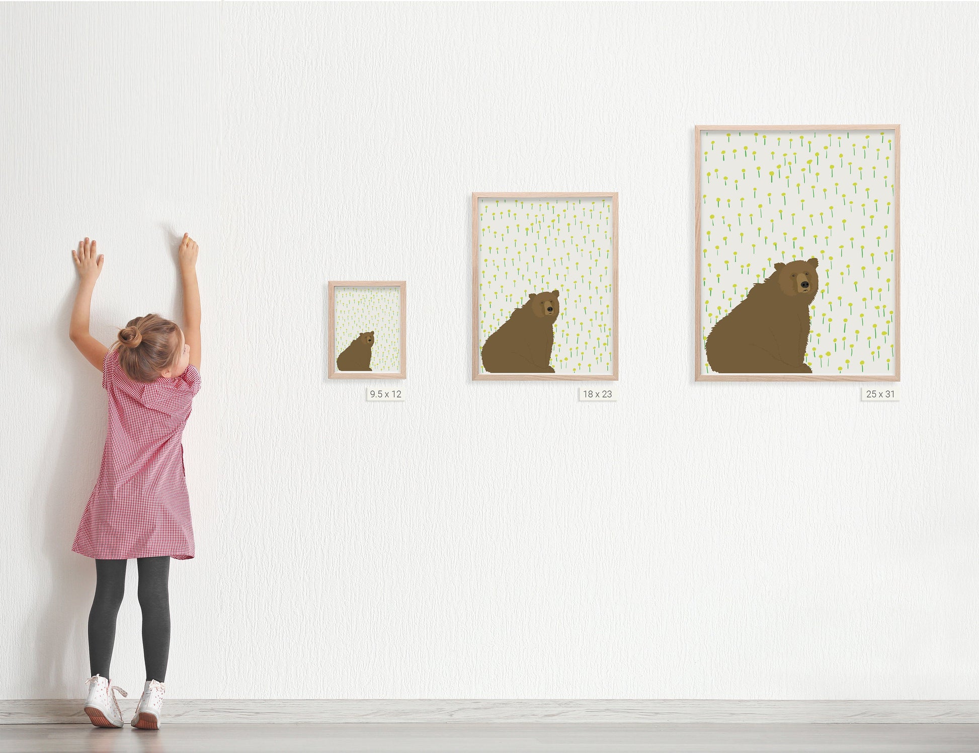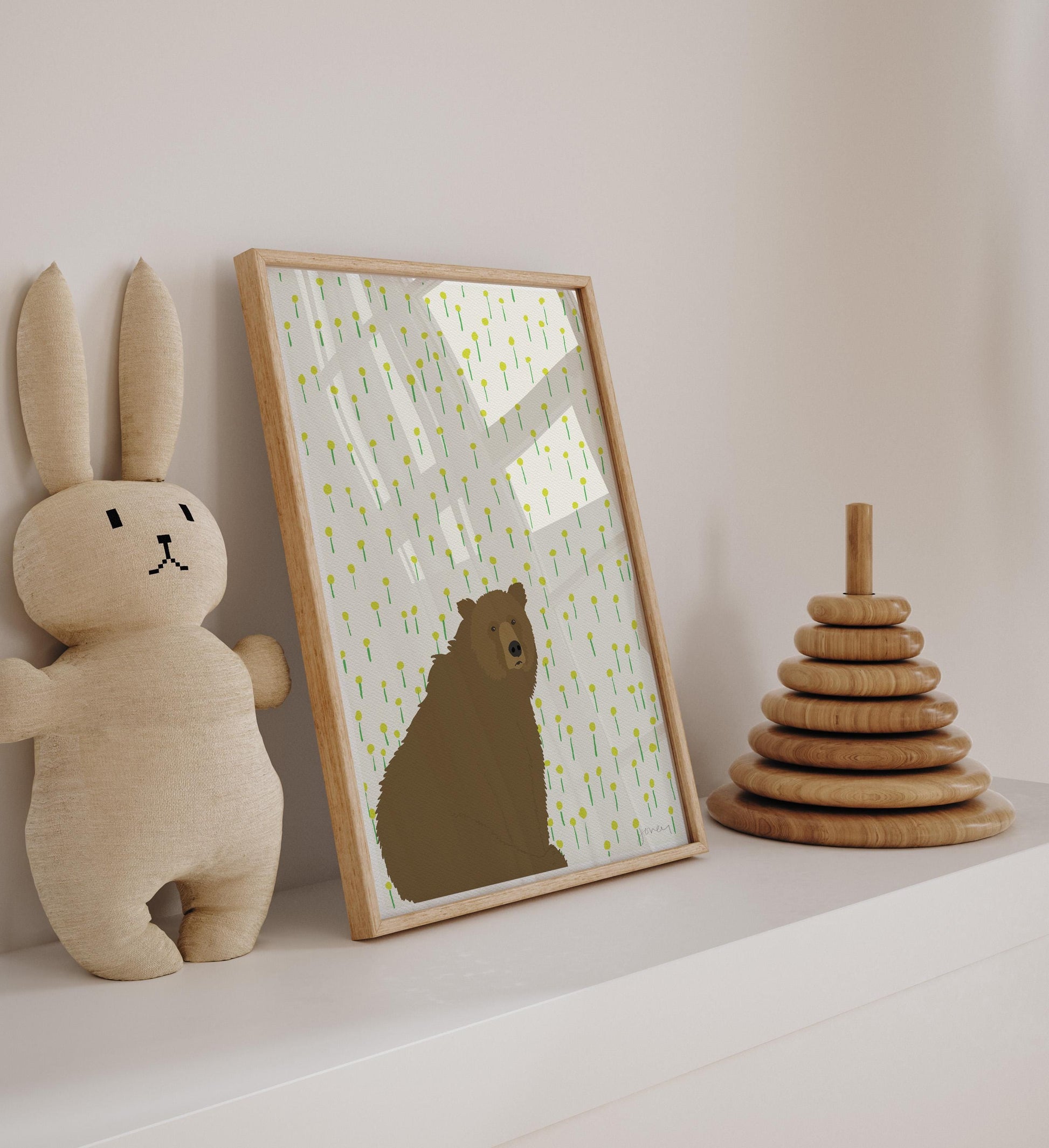 Enjoy the playful charm of the brown Bear with this adorable art print. Inspired by a time when my child was fascinated by all things bear-related, this artwork brings a touch of warmth and whimsy to any nursery or children's space.