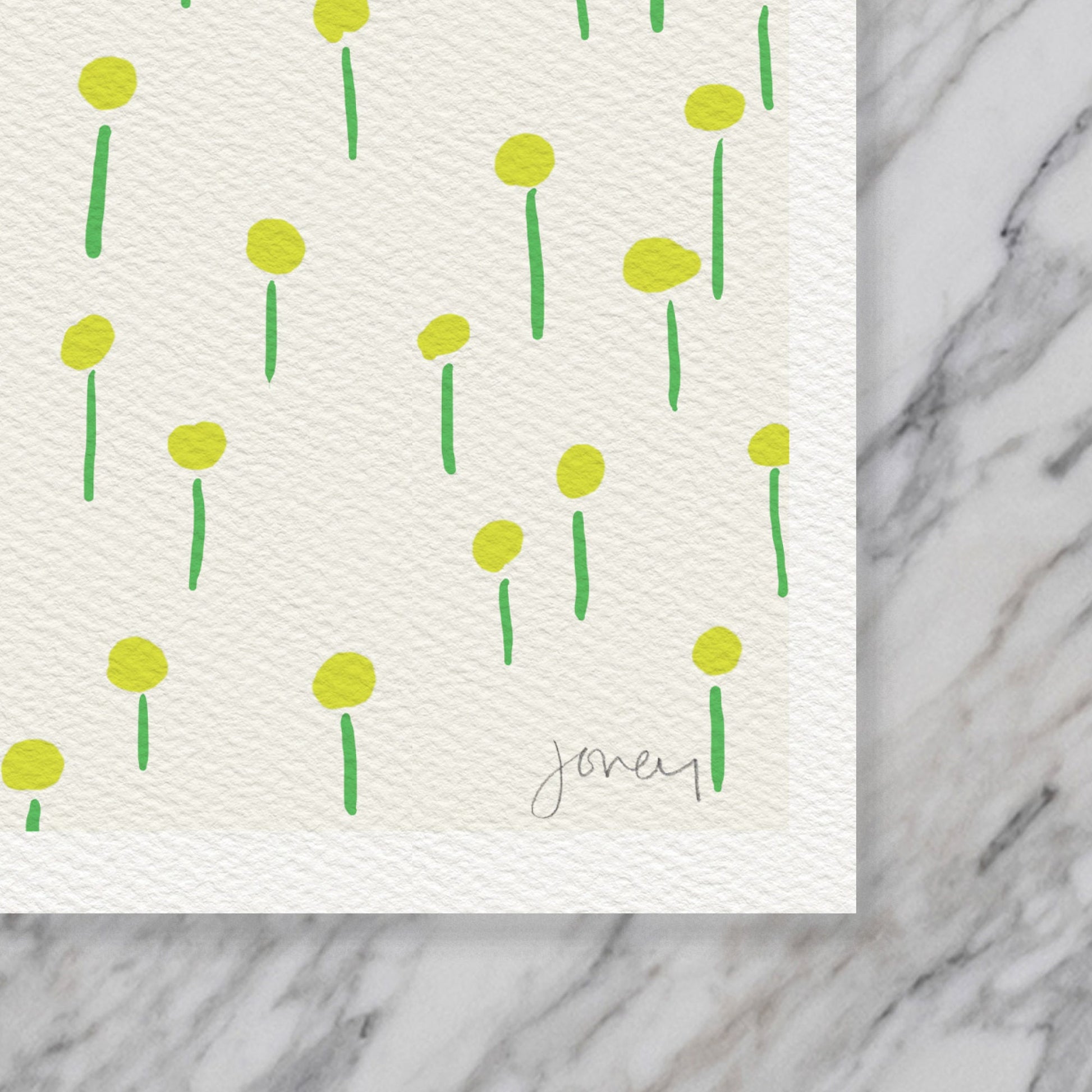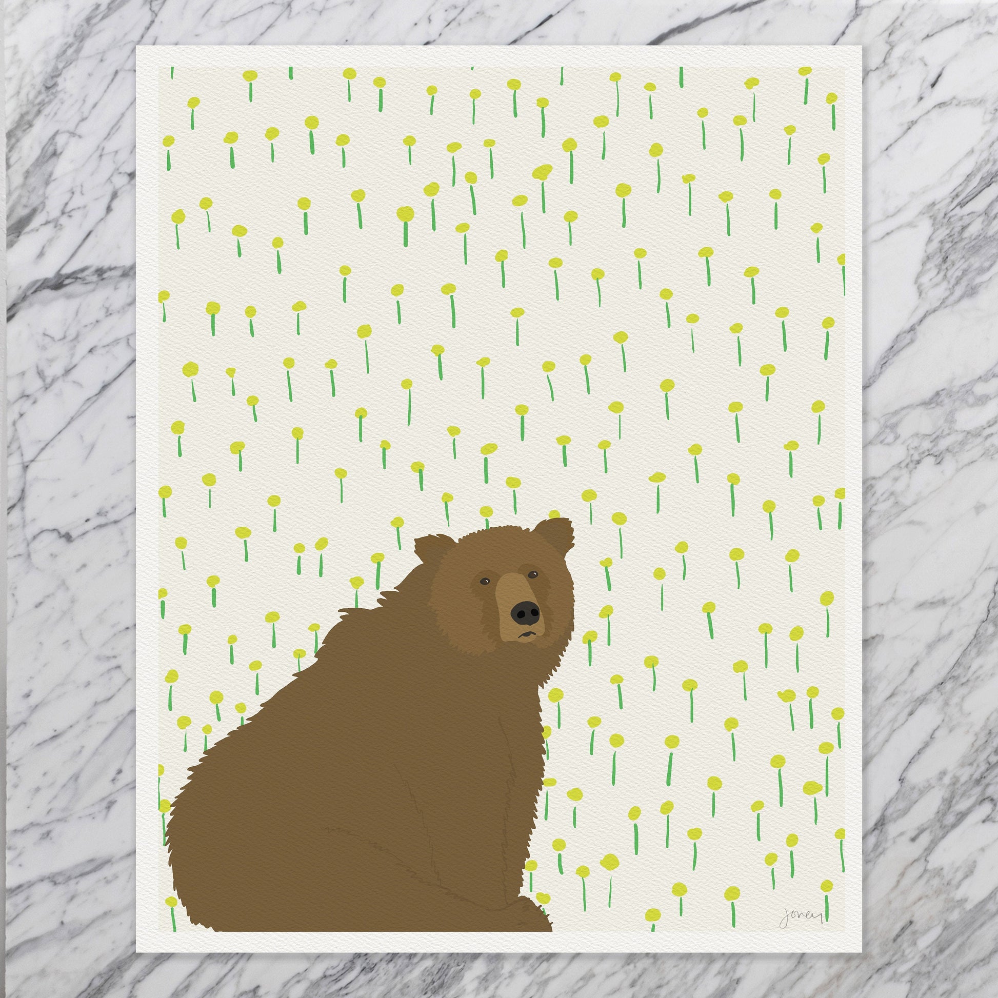 Printed on high-quality archival paper, this art print showcases the endearing features and gentle nature of the Brown Bear surrounded by yellow flowers. Each print is meticulously crafted and personally signed by me, ensuring its authenticity and adding a personal touch to your collection.