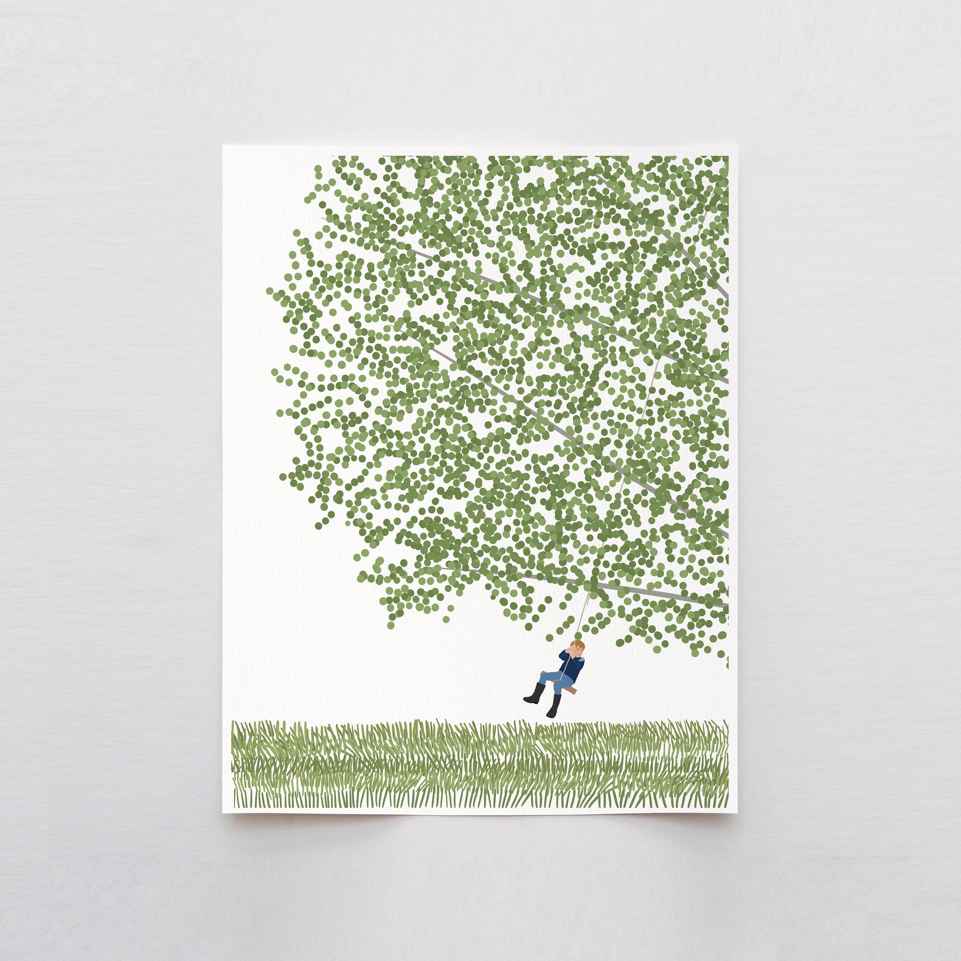 Birch Tree with Boy Swinging Art Print - Unframed or Framed - 230416