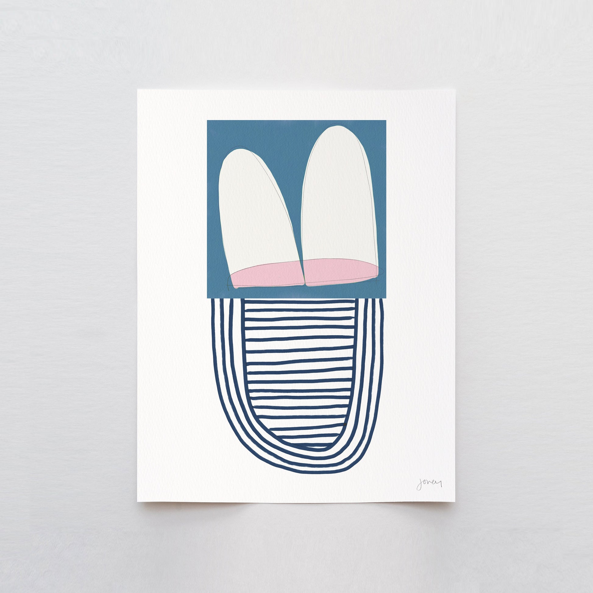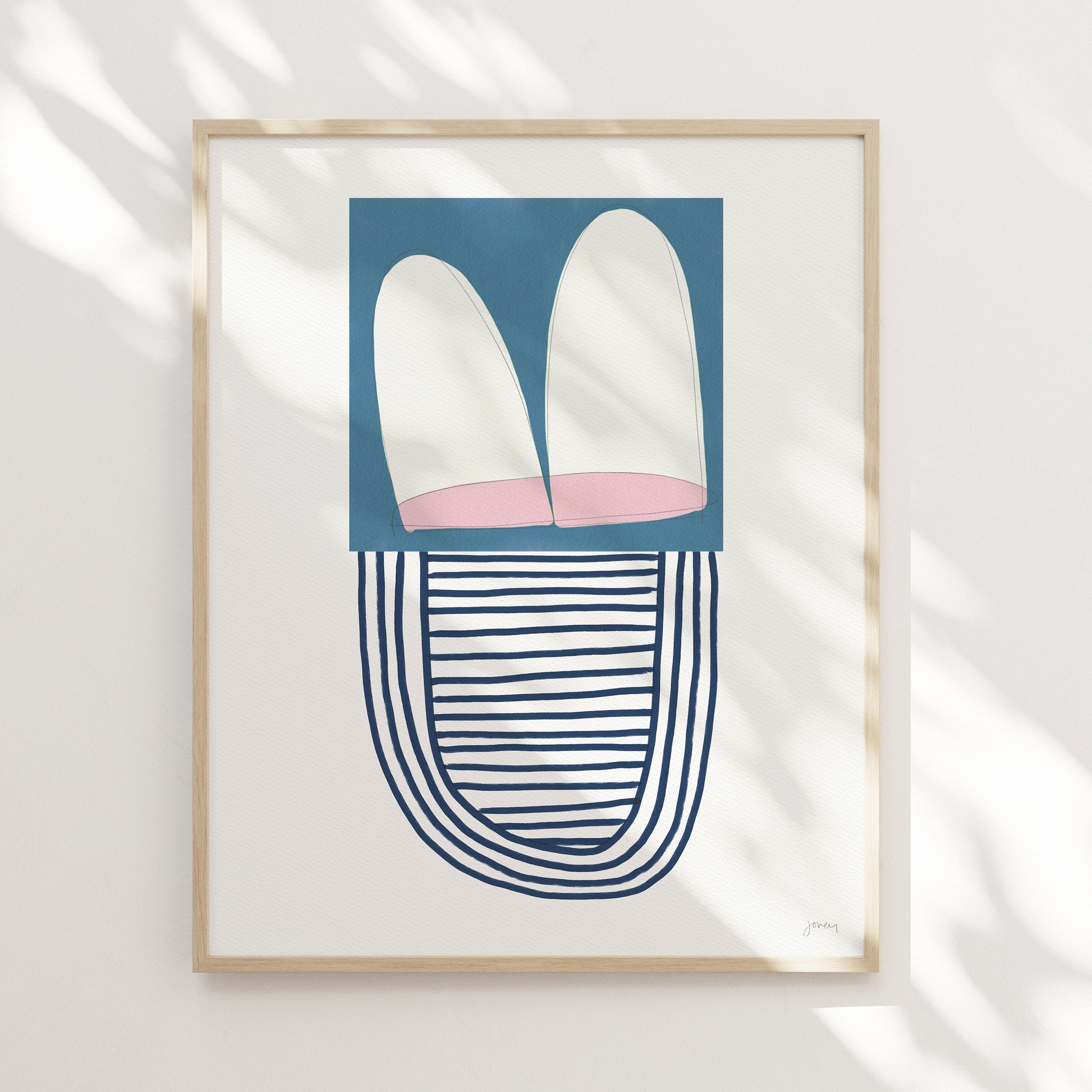 Elevate your space with the modern allure of my 'Abstract with Blue and Pink Shapes' art print, a perfect addition to any contemporary decor.