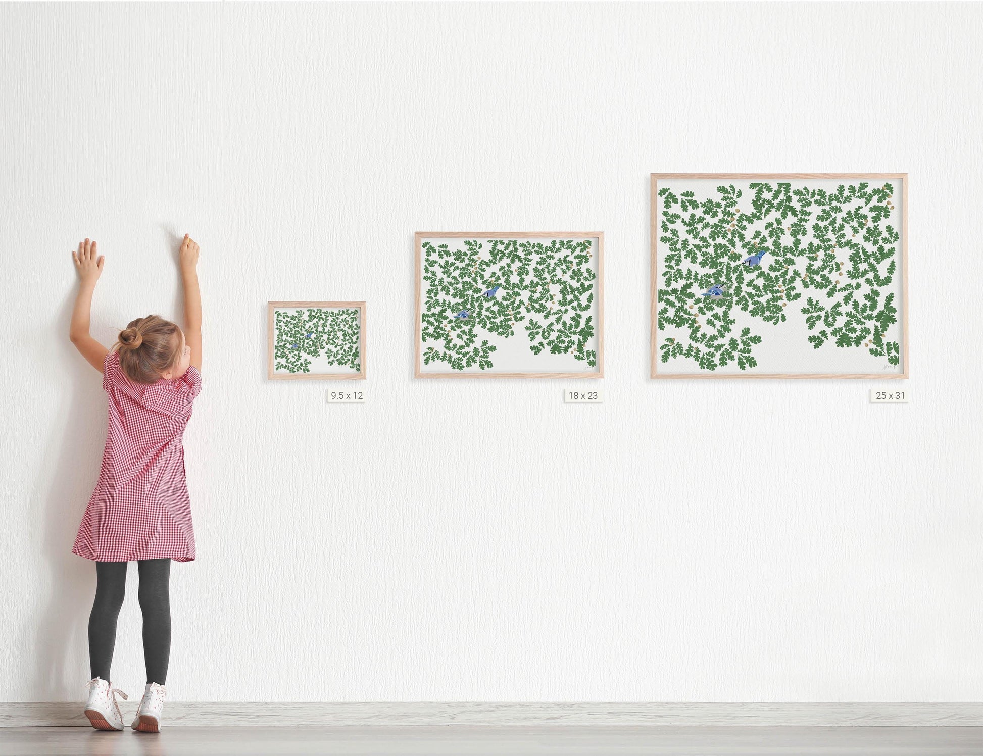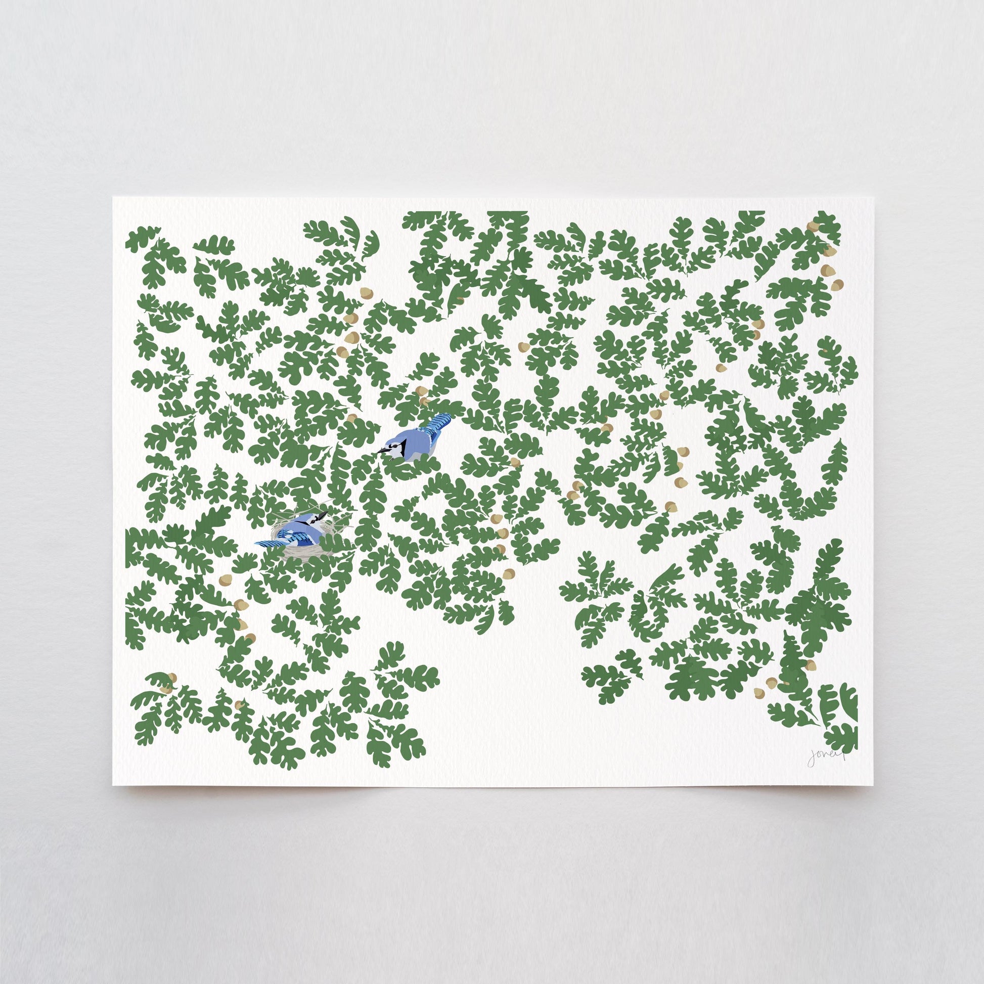 Blue Jays in Oak Leaves Art Print - Unframed or Framed - 240811