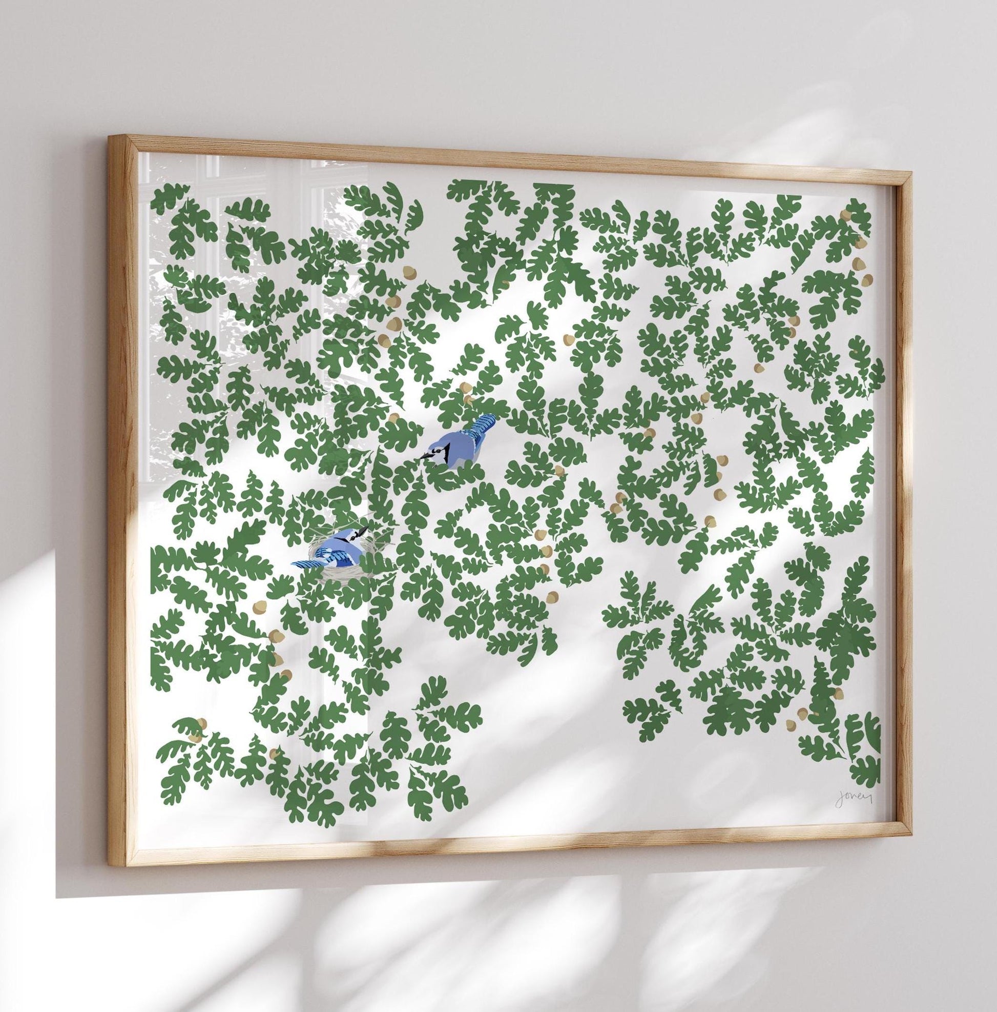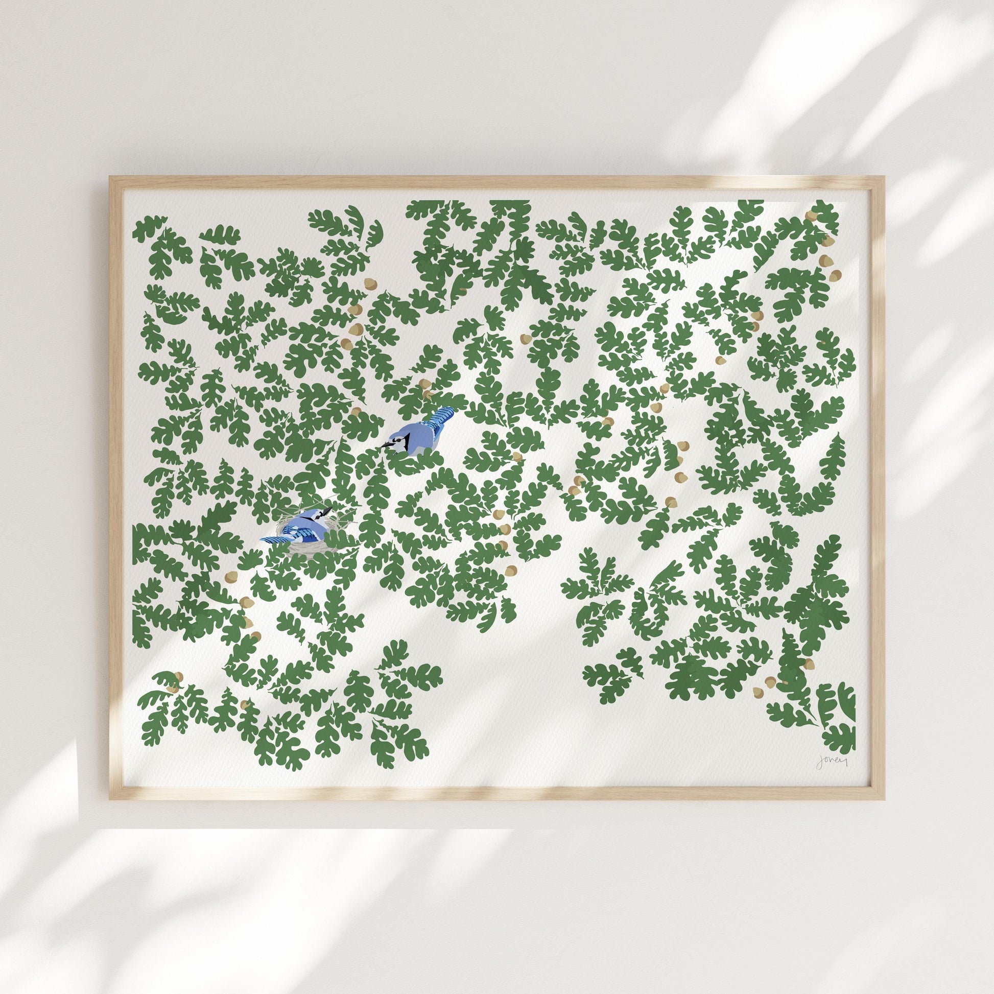 Bring the forest inside with my "Blue Jays in Oak Leaves" art print.