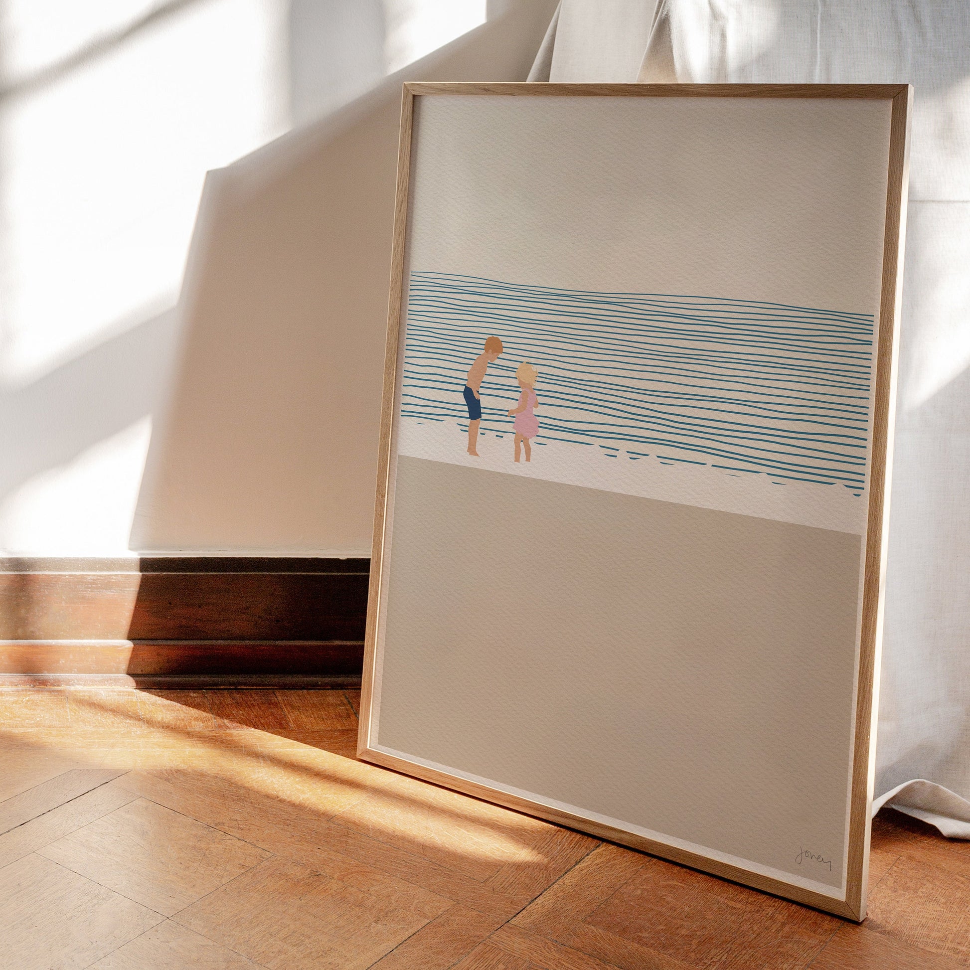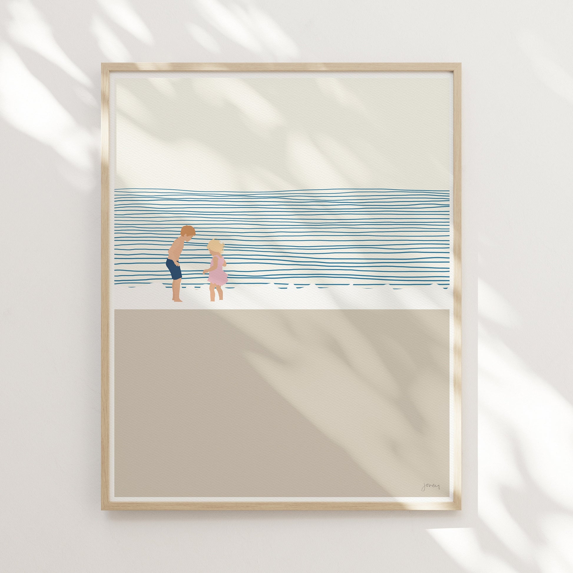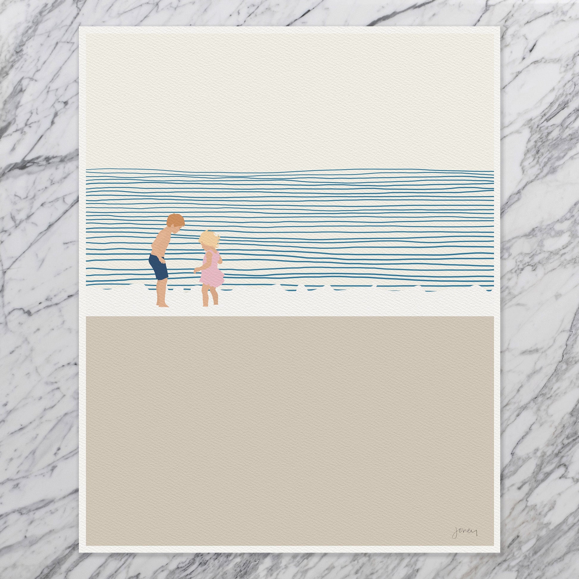 Add coastal fun to your home with our "Brother and Sister on the Beach" art print, a delightful addition to your home.