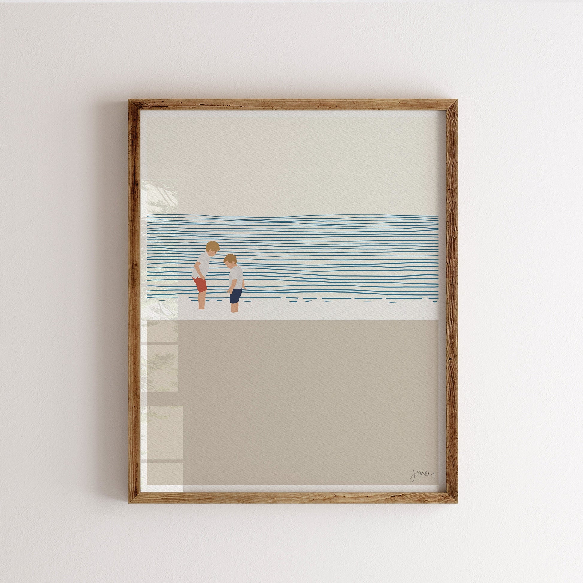 Invite the nostalgic charm of "Brothers on the Beach" into your space, capturing the essence of childhood exploration and the joy of familial bonds.