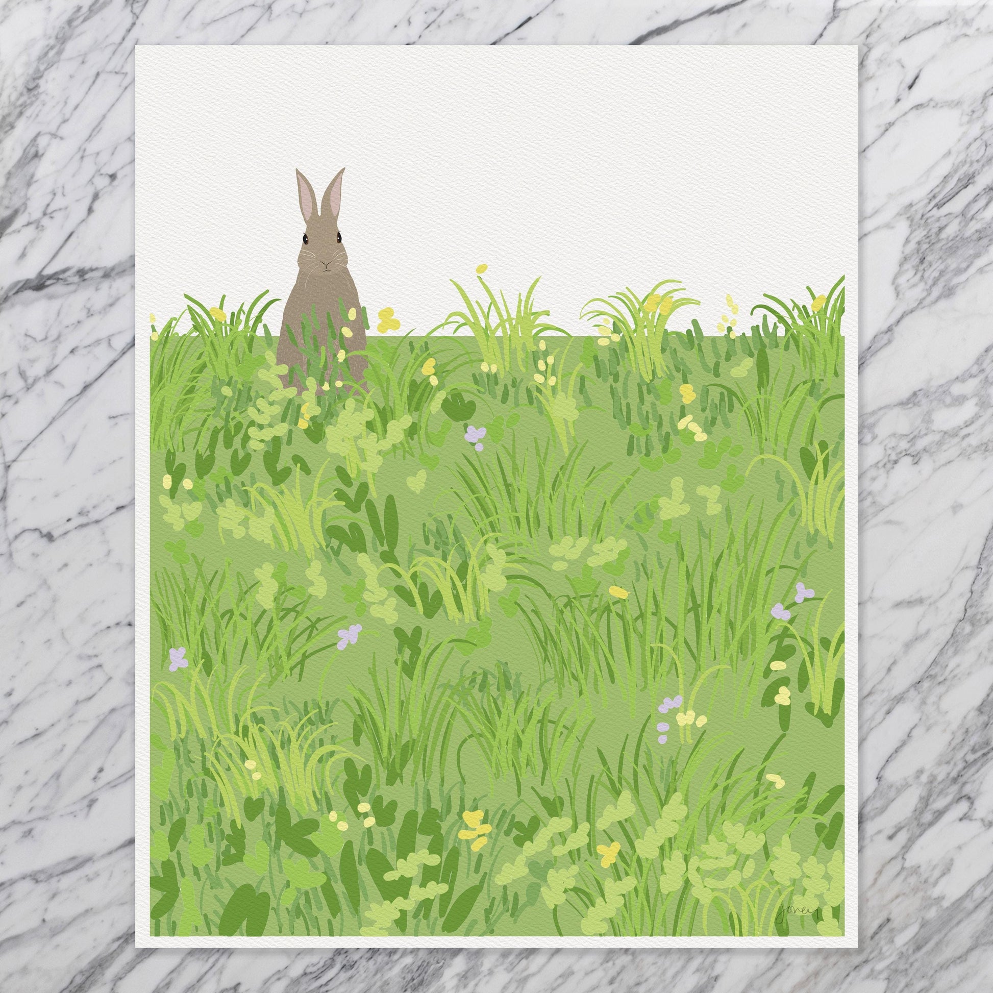 Inspired by the playful cottontail rabbits that lived in the grass near my family home in the Santa Cruz Mountains, my "Bunny in the Grass Art Print" will bring some springtime green to your space.