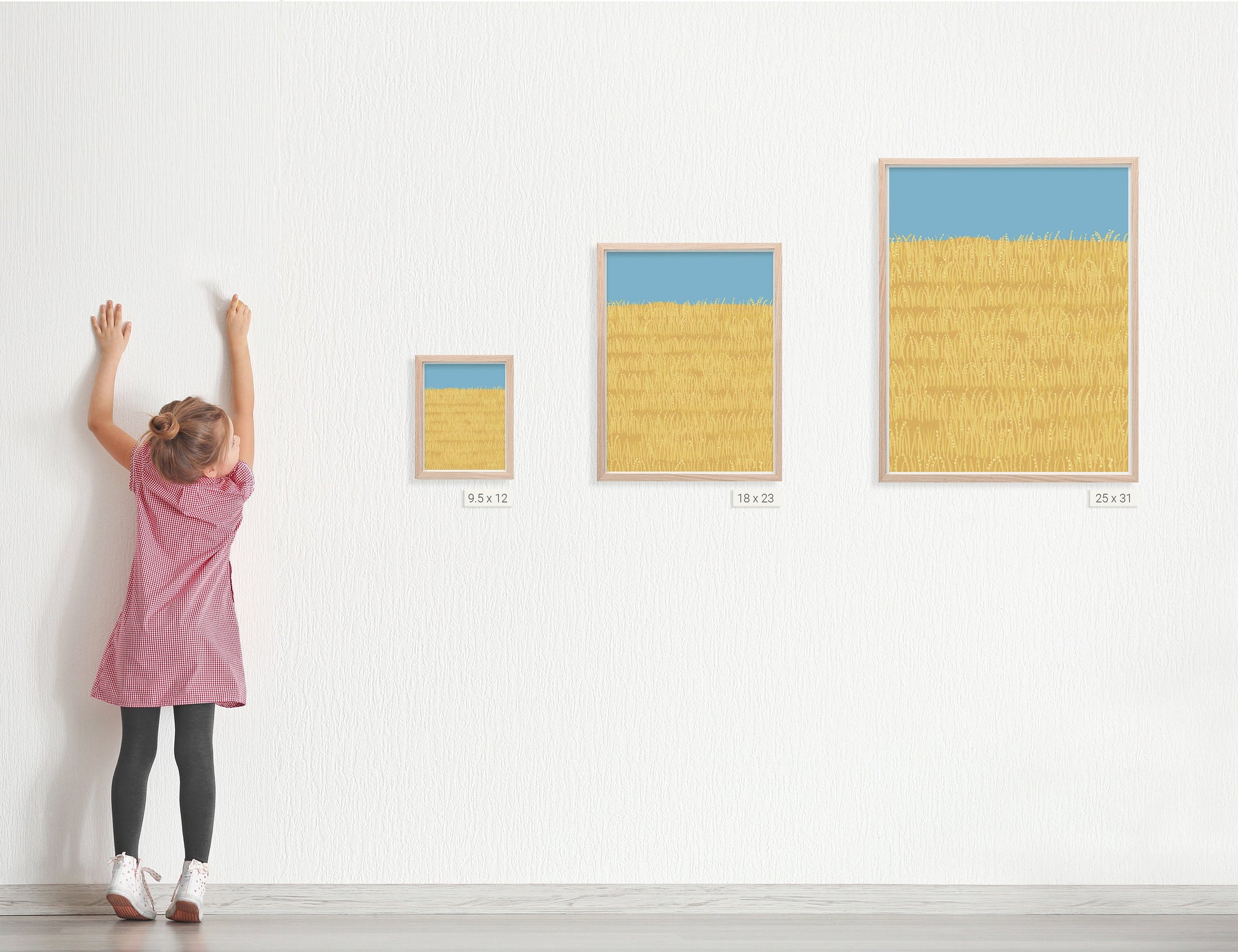 Choose between framed or unframed options to suit your preference. Our carefully-selected frames, made from solid maple, provide a ready-to-hang presentation that complements the modern aesthetic of the artwork. Alternatively, the unframed prints are available in standard sizes, such as 8"x10" and 16"x20", making it easy to find frames that work well in your space. If you are looking for a custom size, please let us know, and we'll be happy to help.