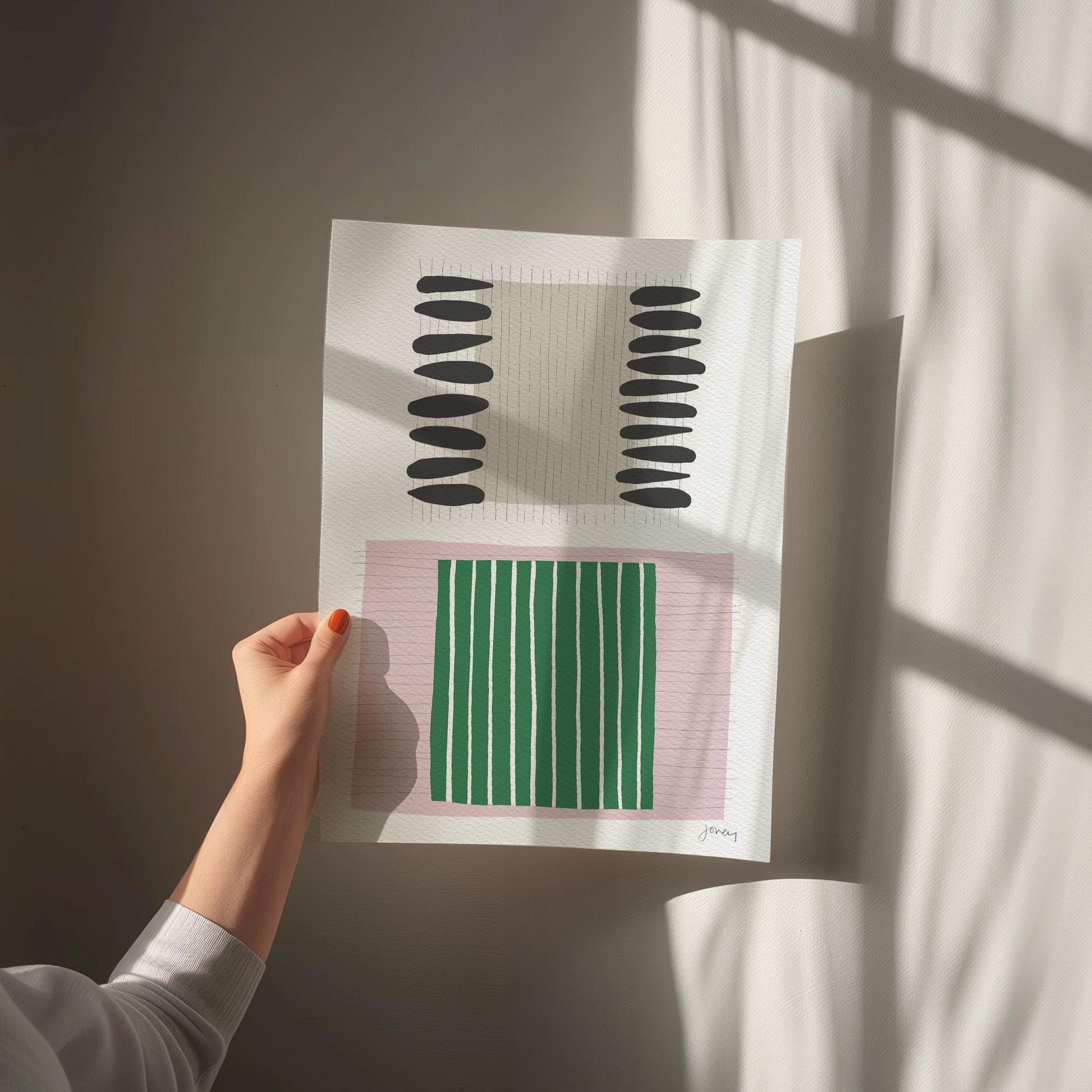 Printed on high-quality archival paper, this art print beautifully captures the harmony and balance of the abstract composition. The soft color palette creates a sense of calm and relaxation. Each print is meticulously crafted, signed, and printed by me, ensuring its authenticity and adding a personal touch to your decor.