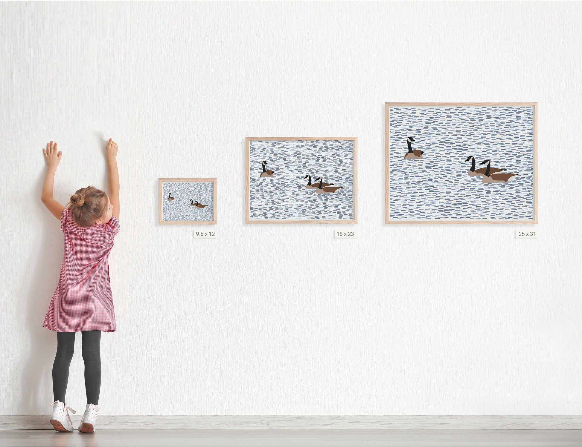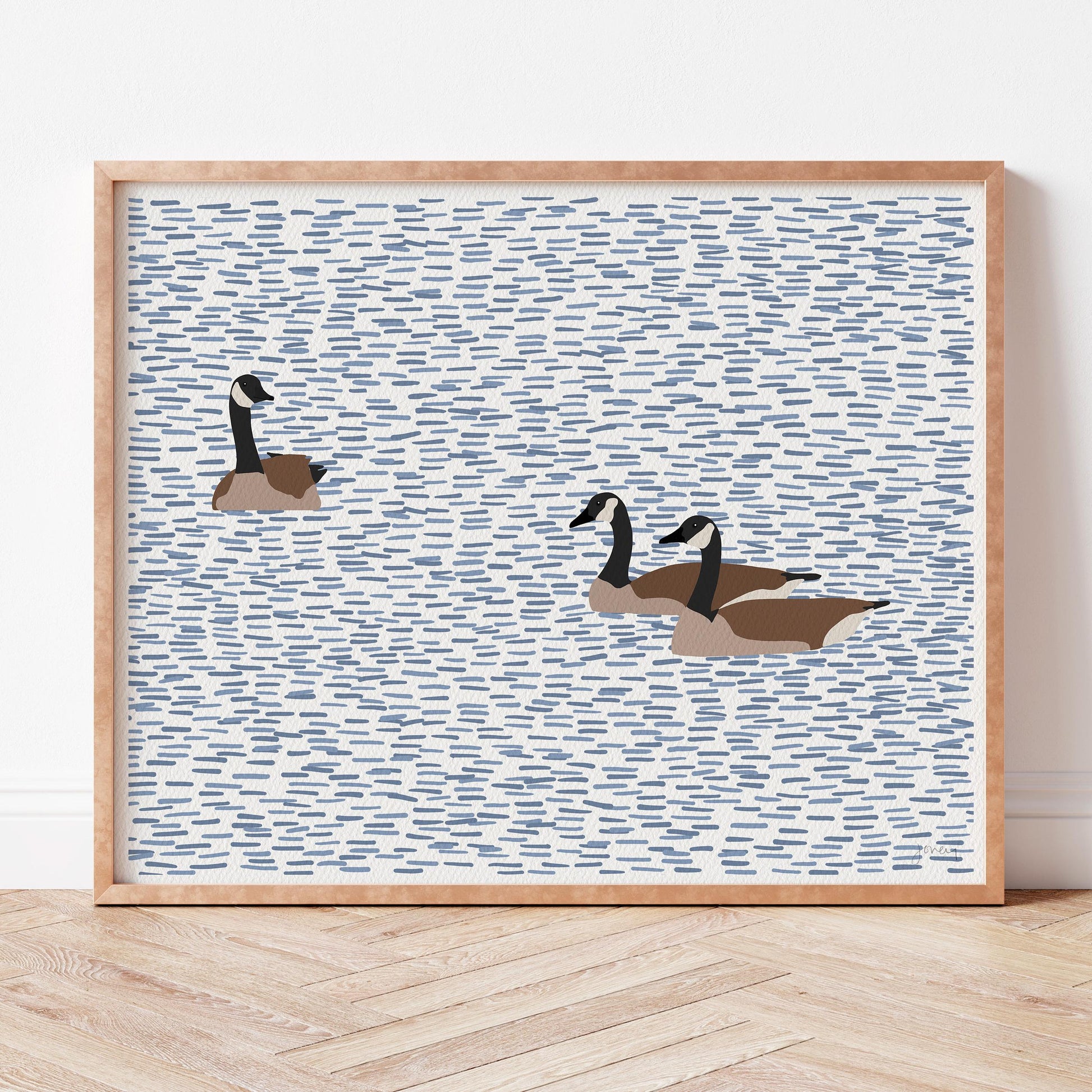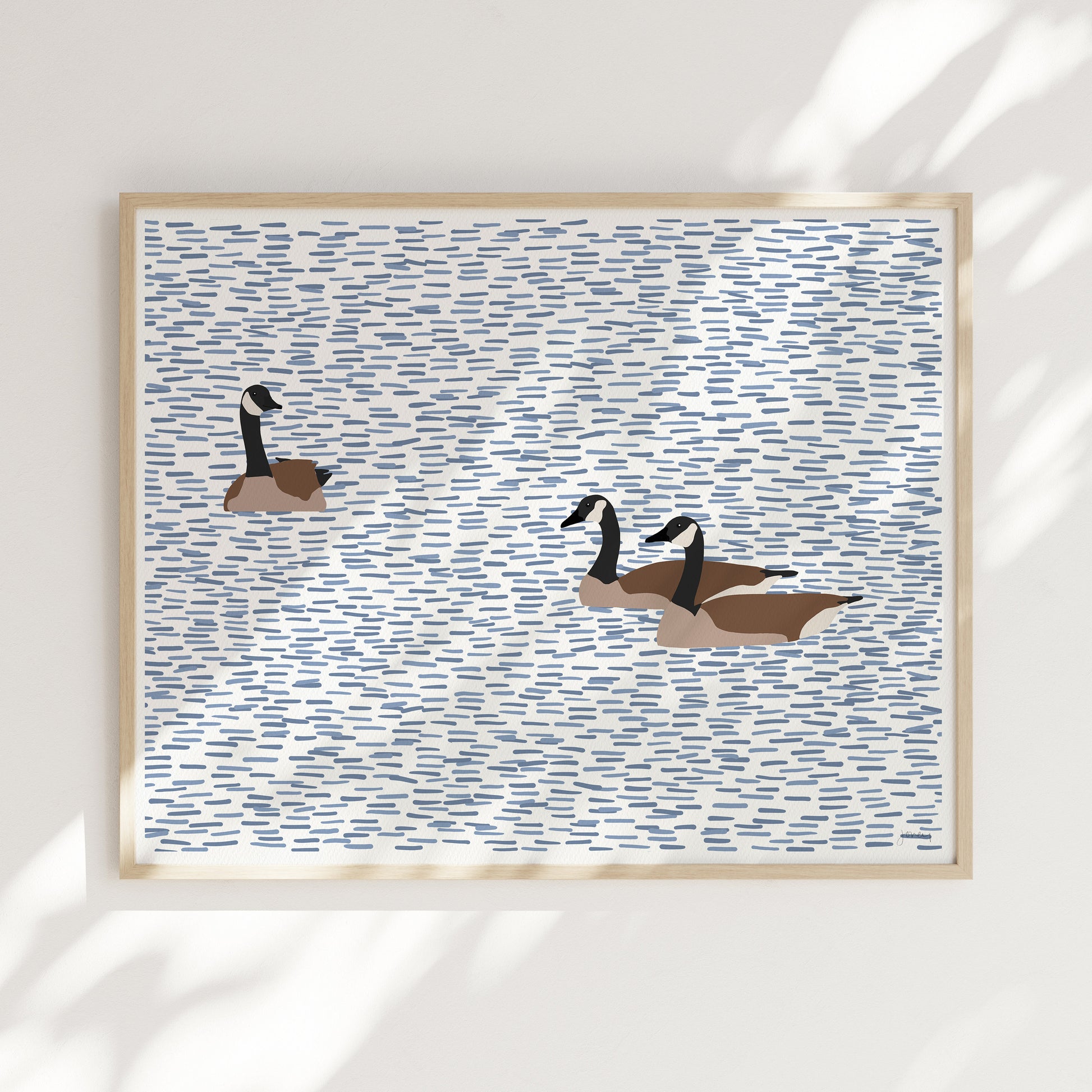 Invite these birds into your living space with the "Canada Geese Swimming Art Print." Perfect for bird lovers or anyone looking to infuse their surroundings with the wonder of the natural world.