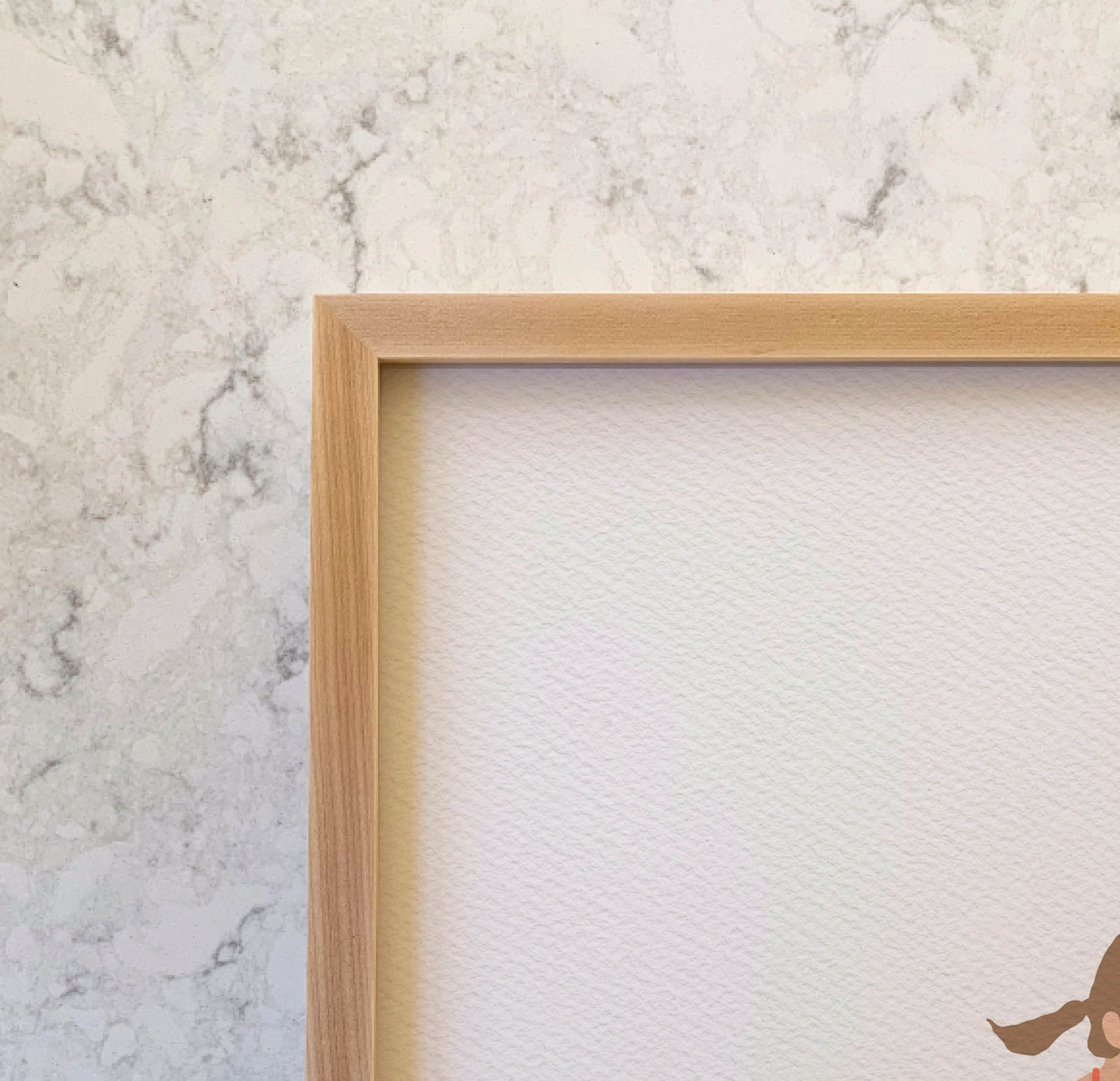 Choose between framed or unframed art. My thoughtfully selected frames, made from sustainably sourced solid maple, arrive ready to hang and beautifully complement the artwork. Alternatively, unframed prints are available in standard sizes, such as 8"x10" and 16"x20", allowing you to choose your own frame. Custom sizes are also available upon request.