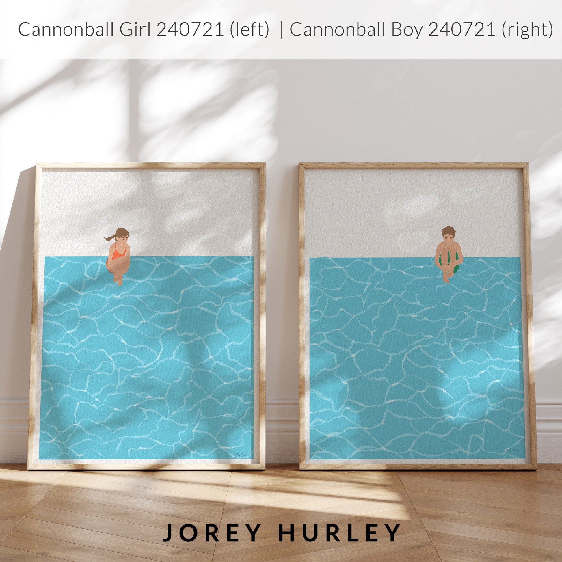 Add a splash of summer fun to your home with the "Cannonball Dive" art print, an energetic and lively addition to any wall.