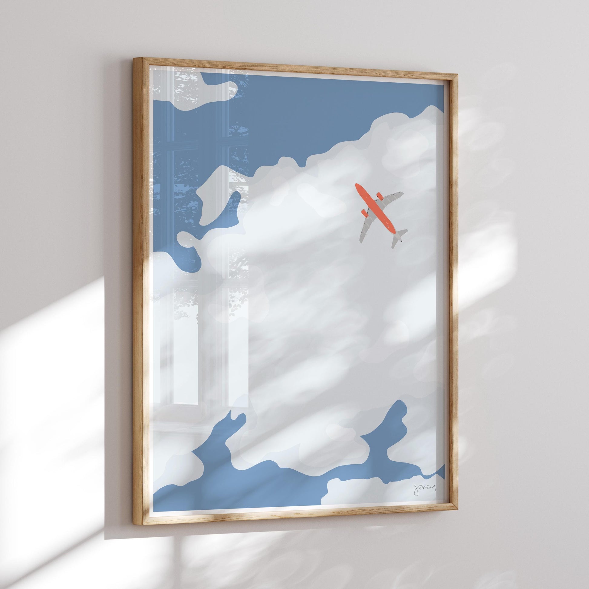 Embark on a visual journey with my "Clouds Plane Spotting " art print. Whether you're an avid traveler or an aviation enthusiast, this piece adds a touch of the globetrotter spirit to your space.