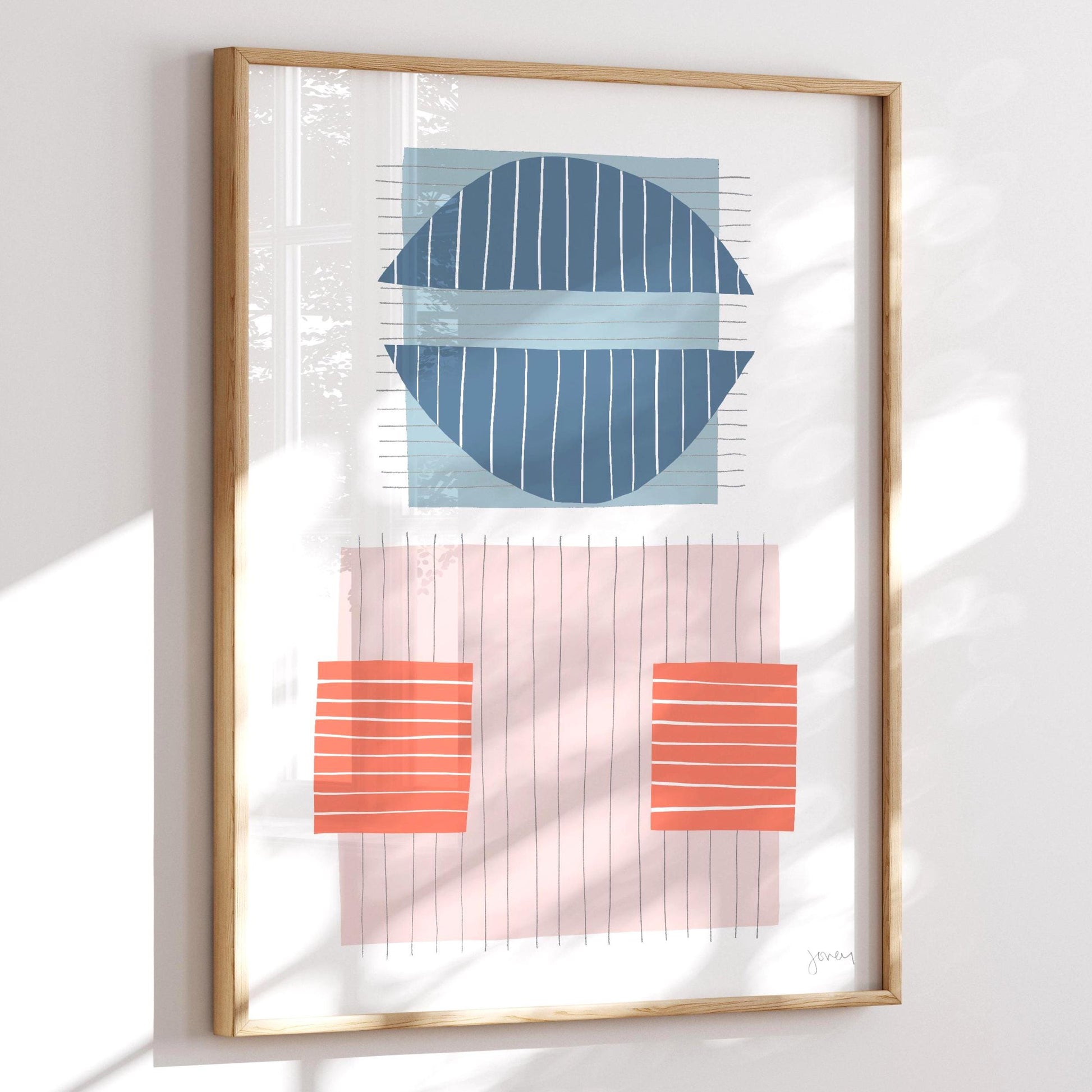 Coral and Blue Abstract Art Print - Unframed or Framed - 190702