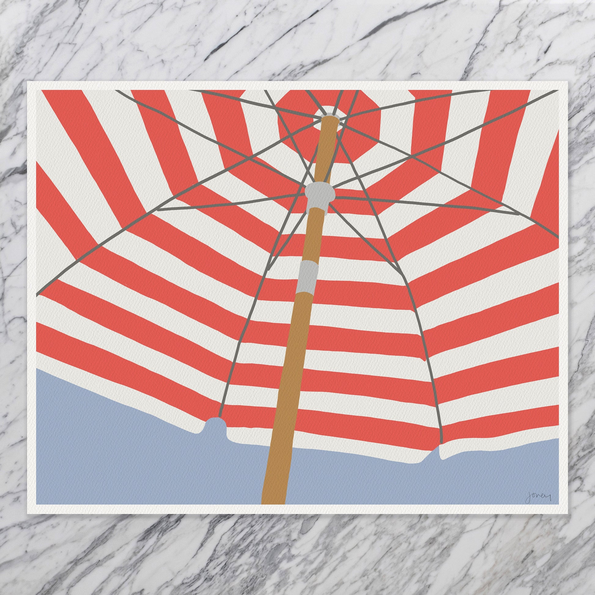 Take in a quiet moment of summer with my "Coral Umbrella Art Print." This artwork captures the essence of summer under an umbrella on your favorite beach.