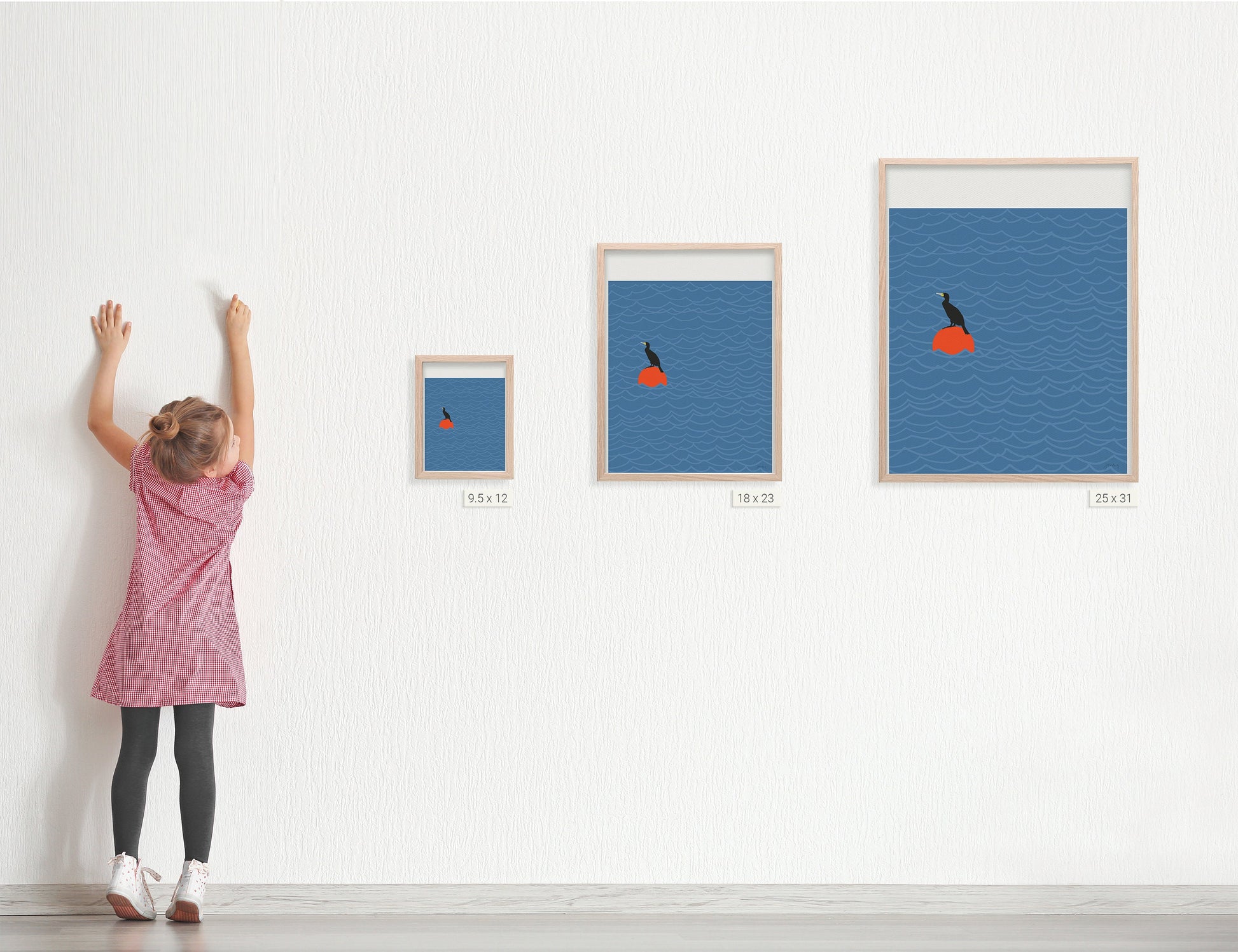 Invite the peaceful pleasures of coastal life into your home with the "Cormorant on Mooring Buoy" art print, a timeless addition to any coastal-themed decor.