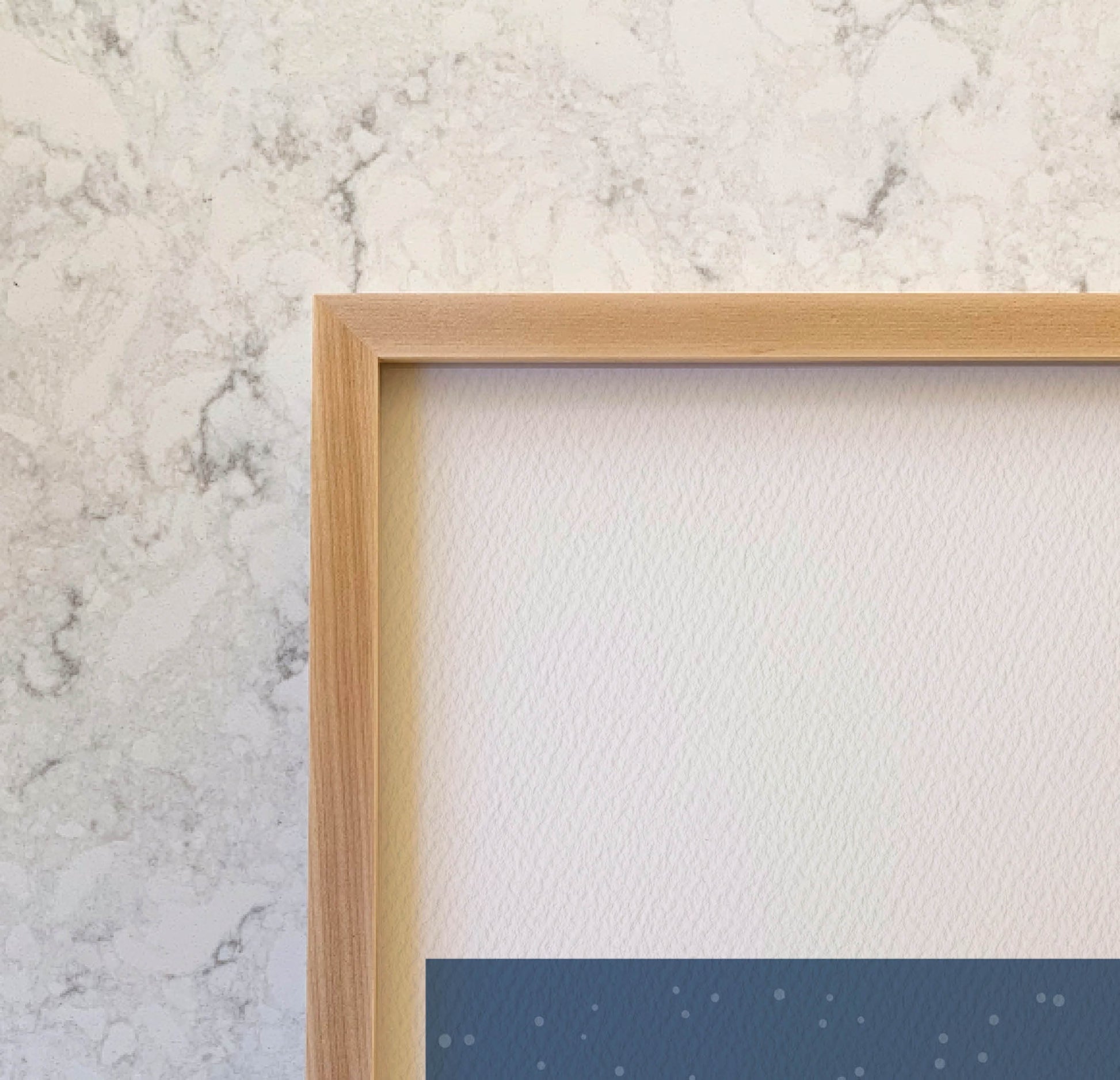 Choose from framed or unframed art. Our carefully selected frames, crafted from sustainably sourced solid maple, arrive ready to hang and beautifully complement the artwork. Alternatively, unframed prints are available in standard sizes such as 8”x10” and 16”x20”, allowing you to choose your own frame. Custom sizes are also available upon request.