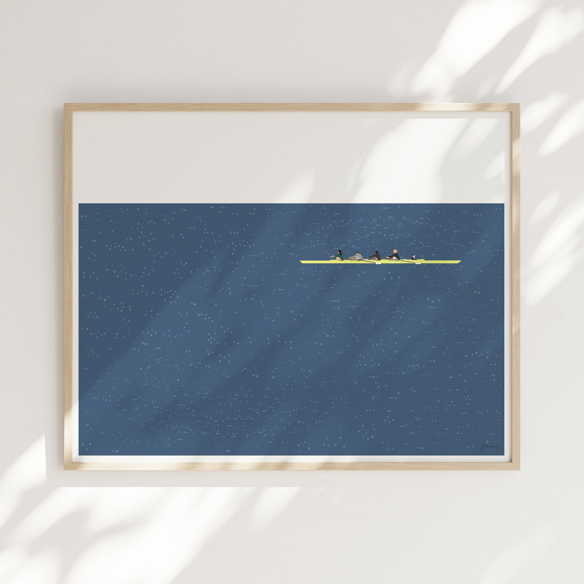 Bring the beauty of the crew into your space with our “Coxed Four” rowing art print, a dynamic and inspiring addition to any wall.