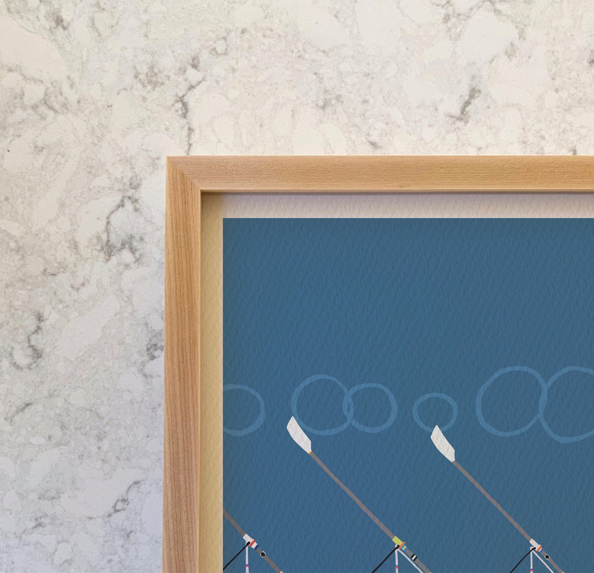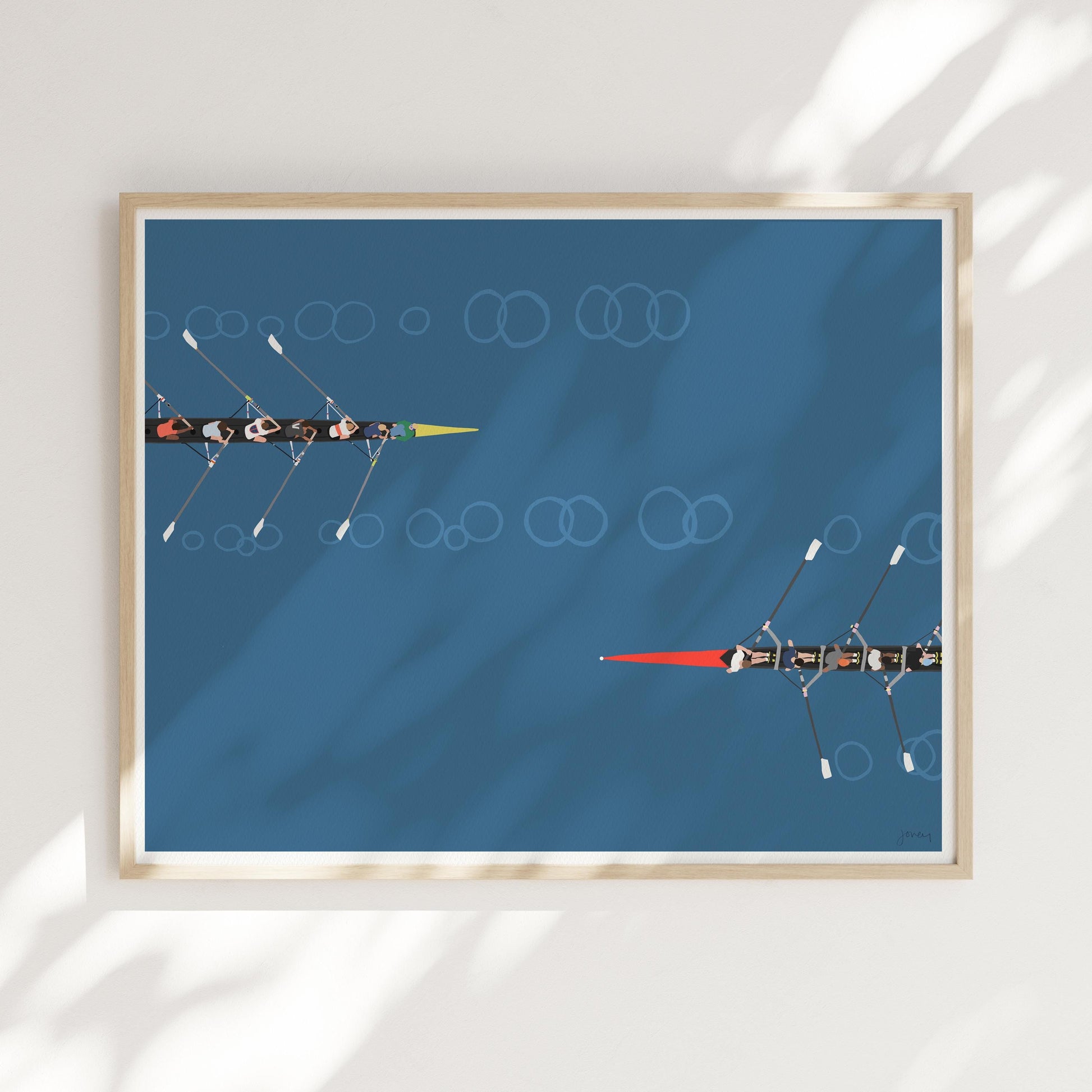 Capture the rhythm and energy of rowing my Crew Race art print. This piece celebrates the precision and strength of the crew as they move in perfect harmony across the water, creating a serene yet powerful image.