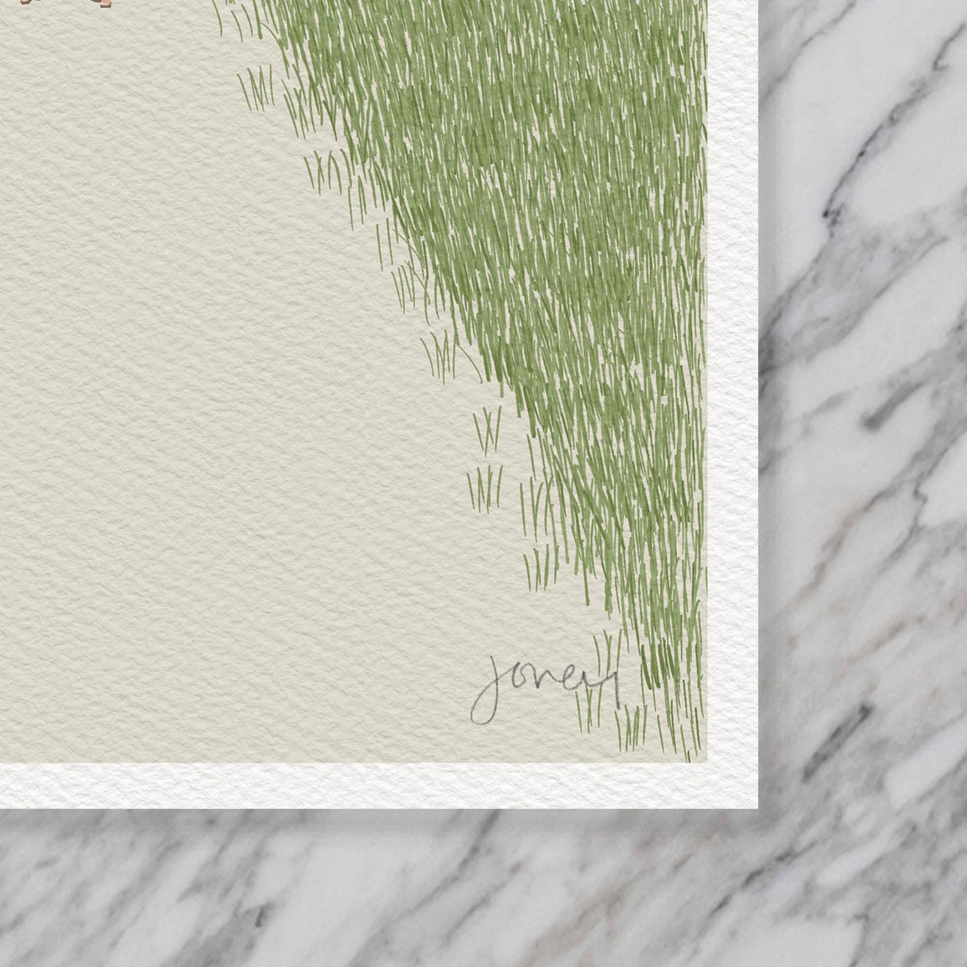 Celebrate the beauty of coastal living with my "Daughters in Beach Dunes" art print. This piece captures sisters exploring the beach dunes, bringing the peaceful ambiance of a day by the sea into your space.