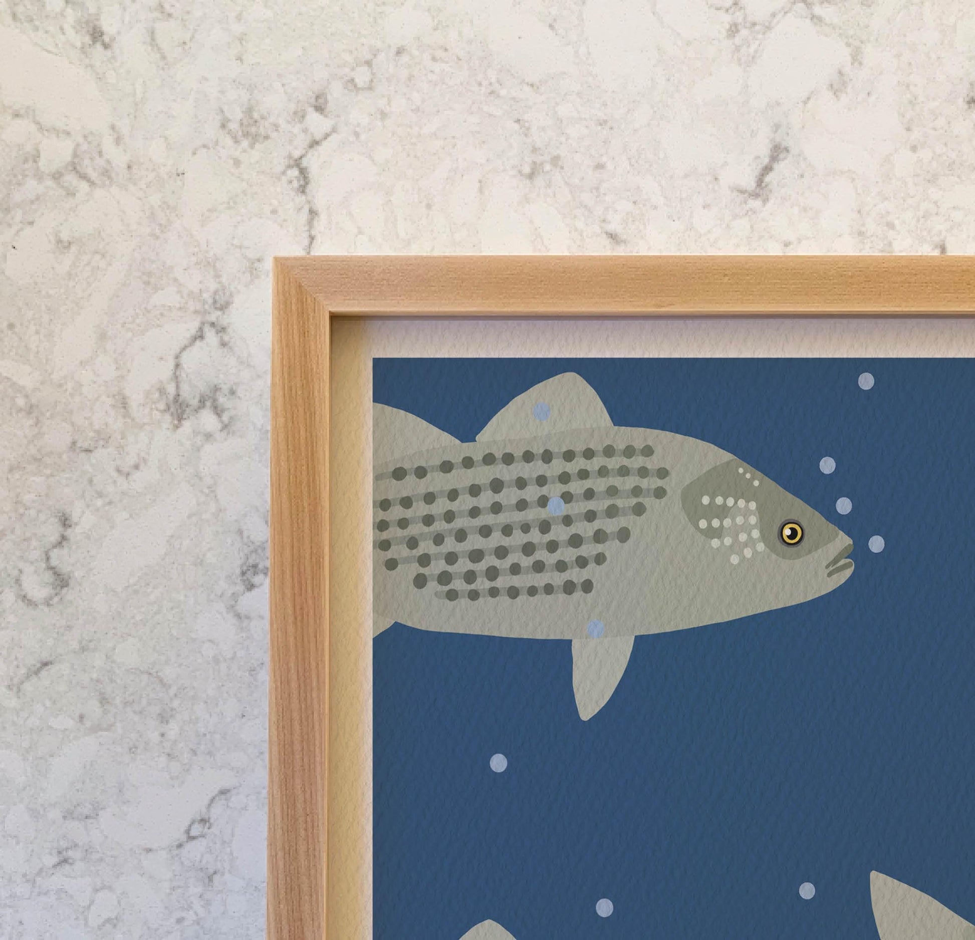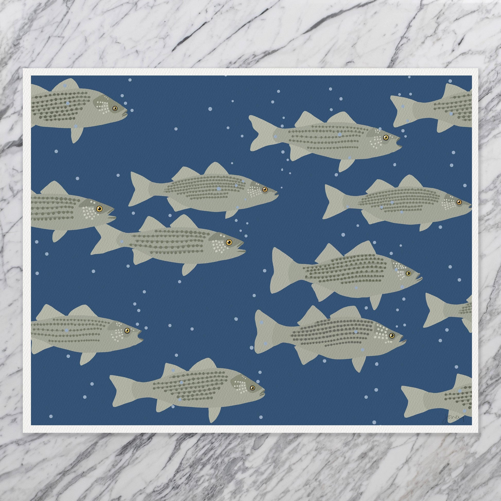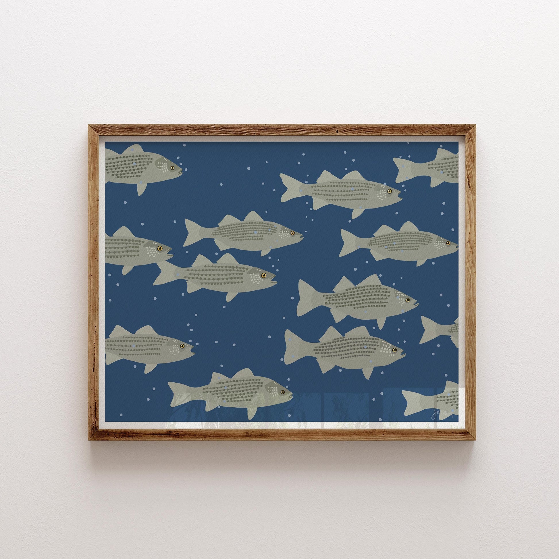 Celebrate the joys of fishing and coastal living with my Deepwater Stripers Art Print. This captivating piece captures the elegance and power of the striped bass, a favorite of anglers everywhere. Whether you're a fishing enthusiast or simply drawn to the tranquil beauty of the ocean, this artwork brings a touch of coastal charm to your space.