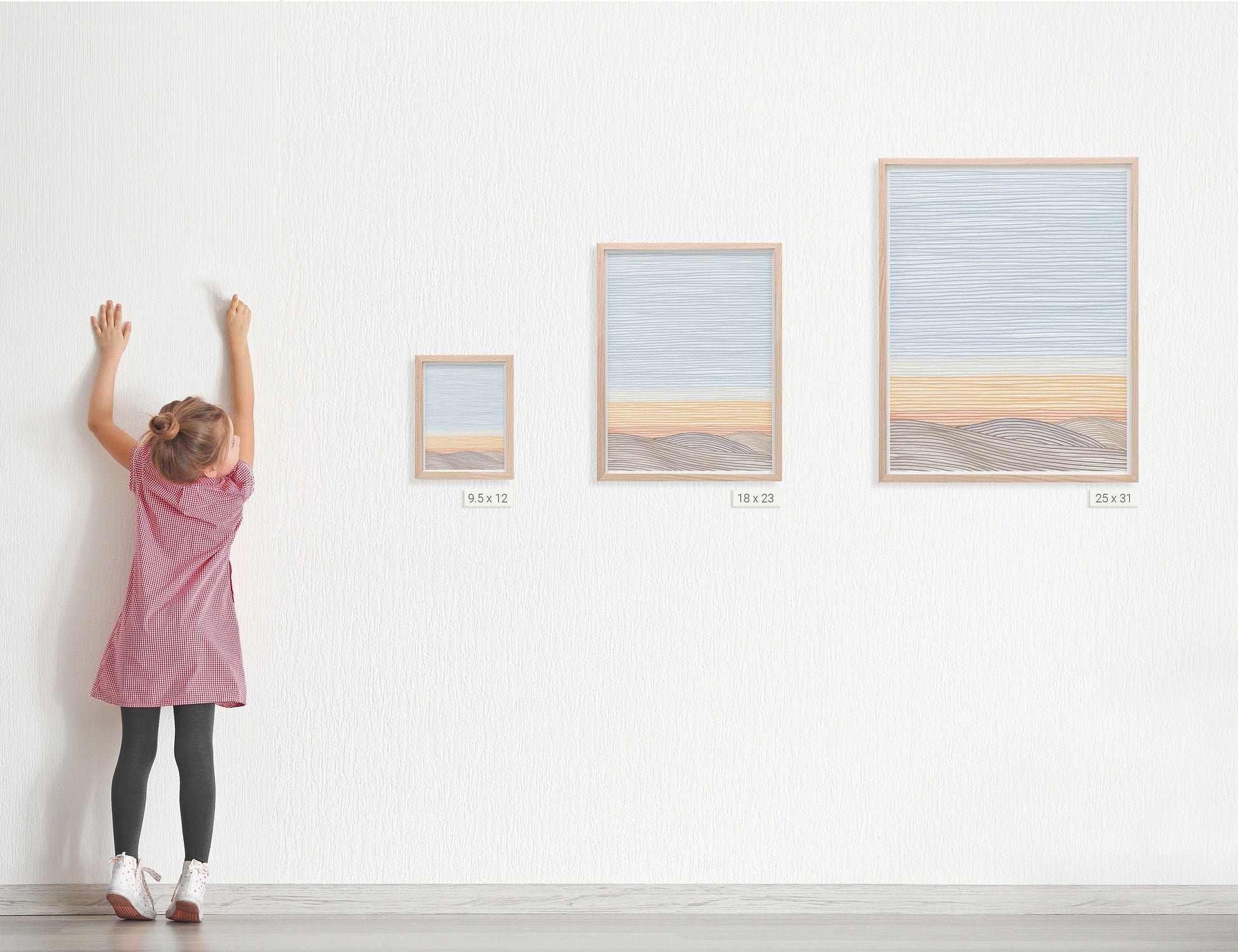 Choose either framed or unframed art. Our wood frames, made from sustainably-sourced solid maple, provide an elegant ready-to-hang presentation that complements the artwork. Alternatively, the unframed prints are available in standard sizes, such as 8"x10" and 16"x20", allowing you to use your own frame. For custom sizes, feel free to let us know, and we are happy to help.
