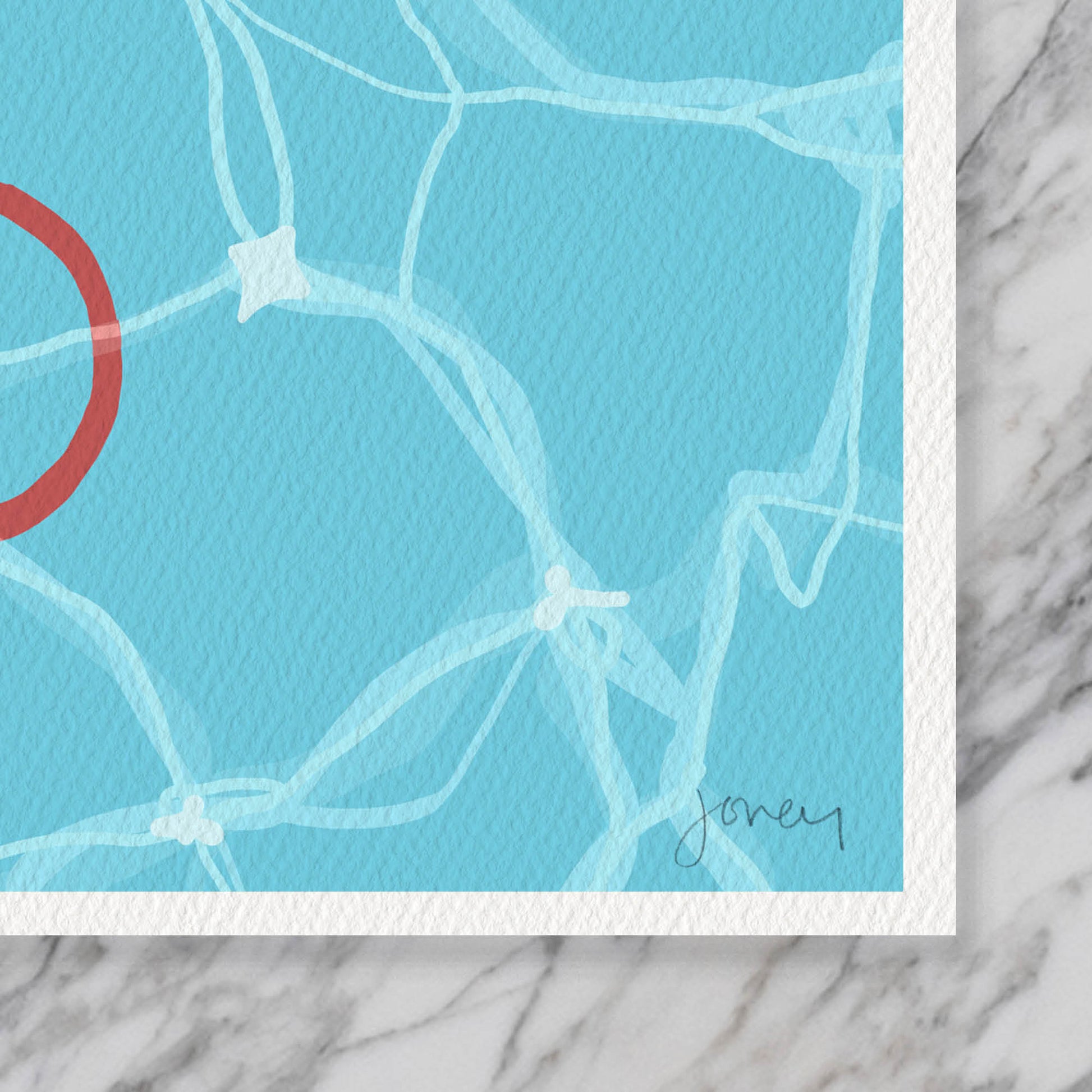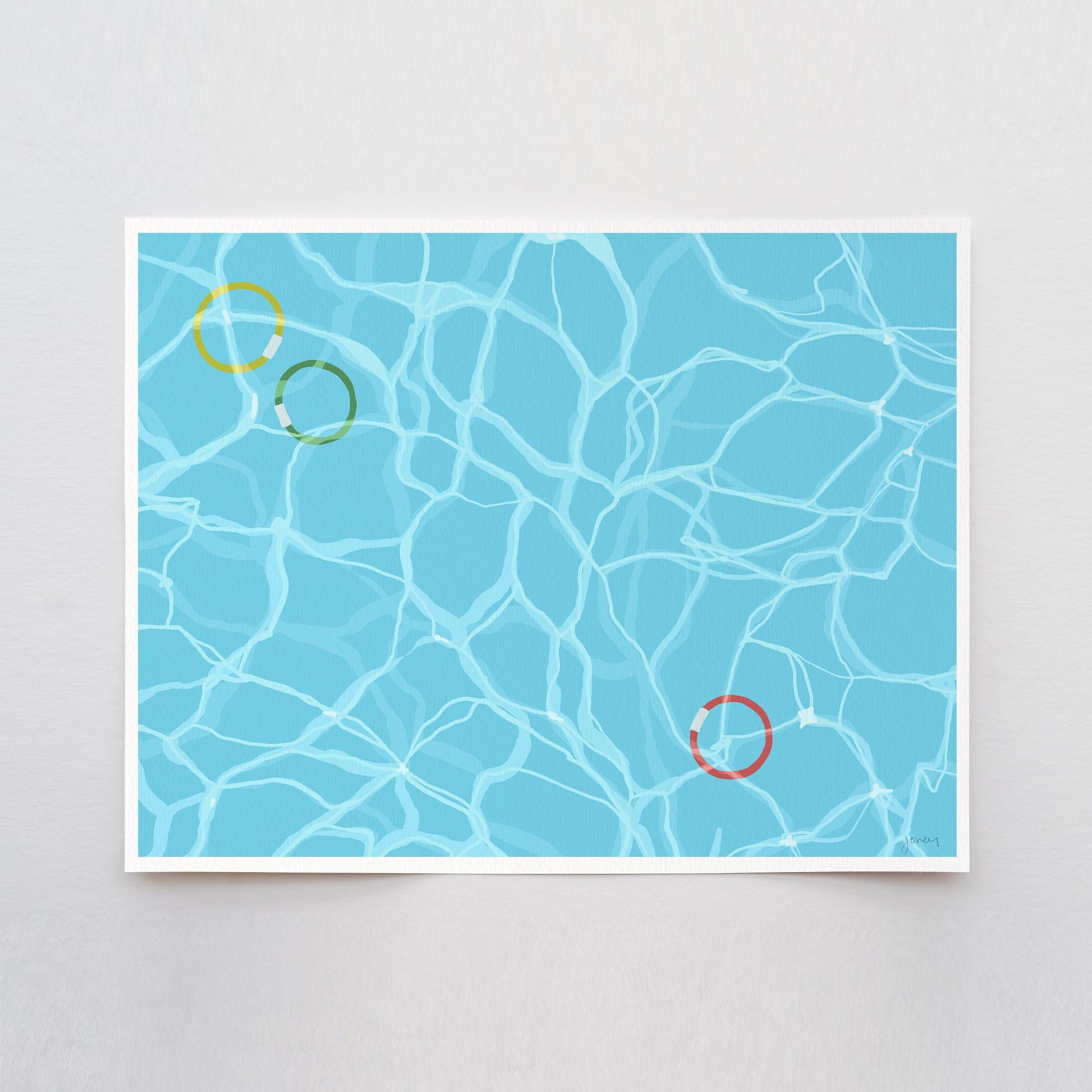 Delve into the playful nostalgia of my 'Dive Rings' art print. This vibrant piece captures the carefree joy of childhood days spent splashing around the pool, resonating with the exuberance of youthful adventures.