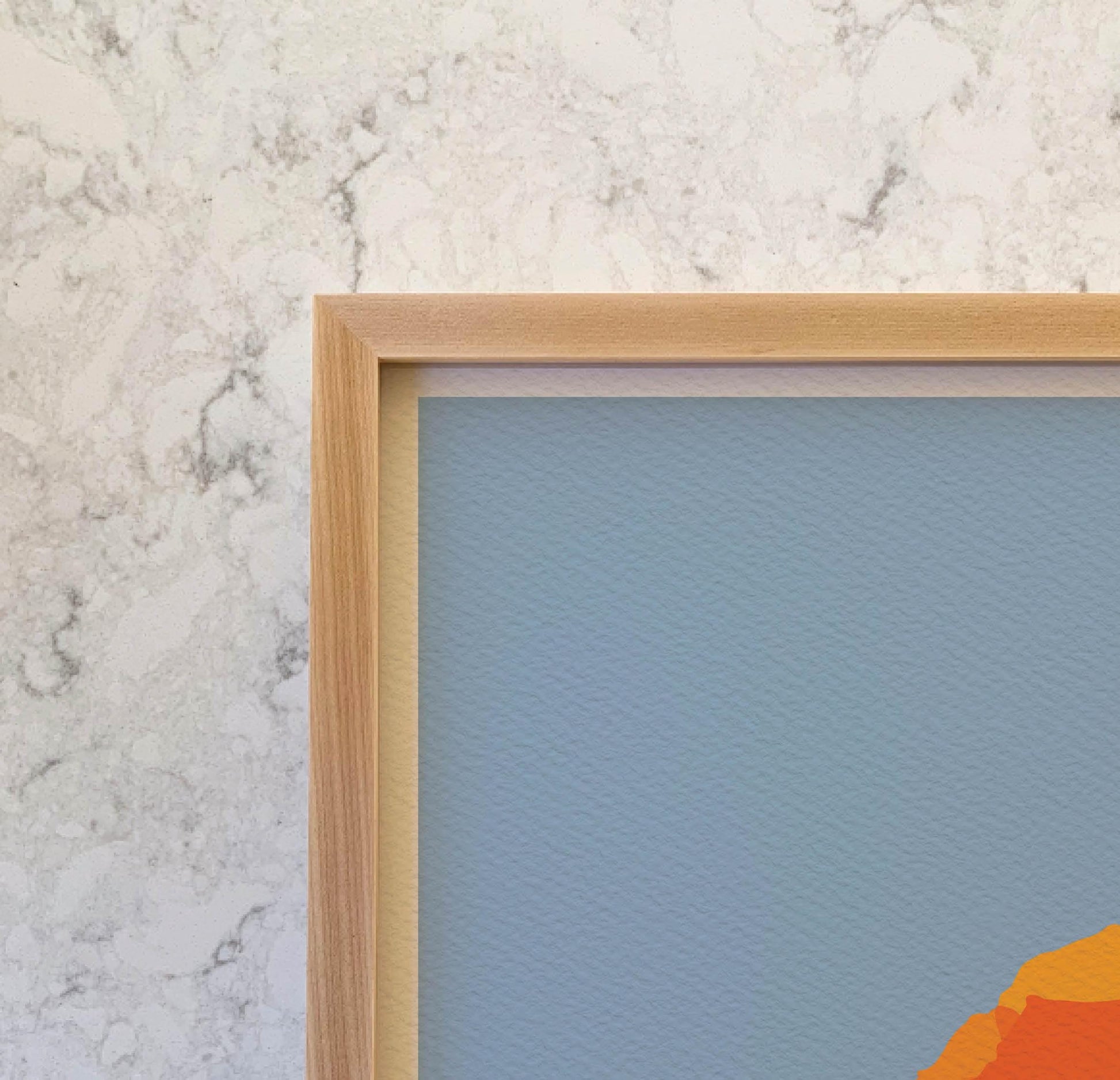 Choose our solid maple frames for a ready-to-hang presentation that complements the artwork. Alternatively, our unframed prints are available in standard sizes, such as 8"x10" and 16"x20", providing the flexibility to choose your own frame. Custom sizes are also available upon request.