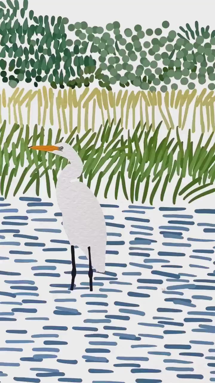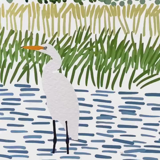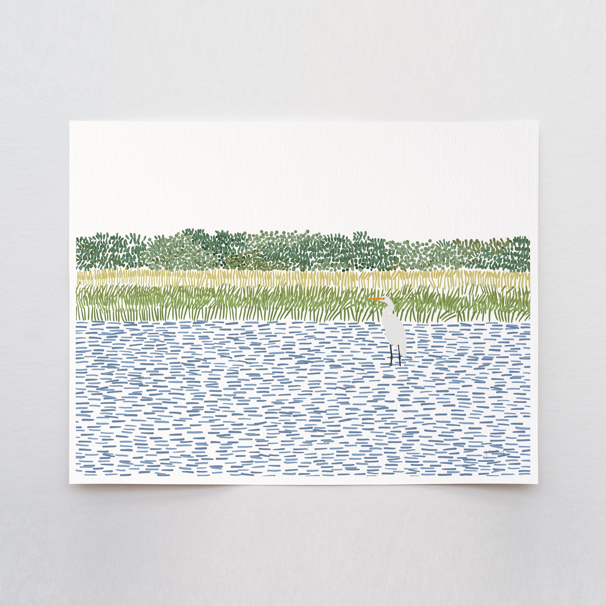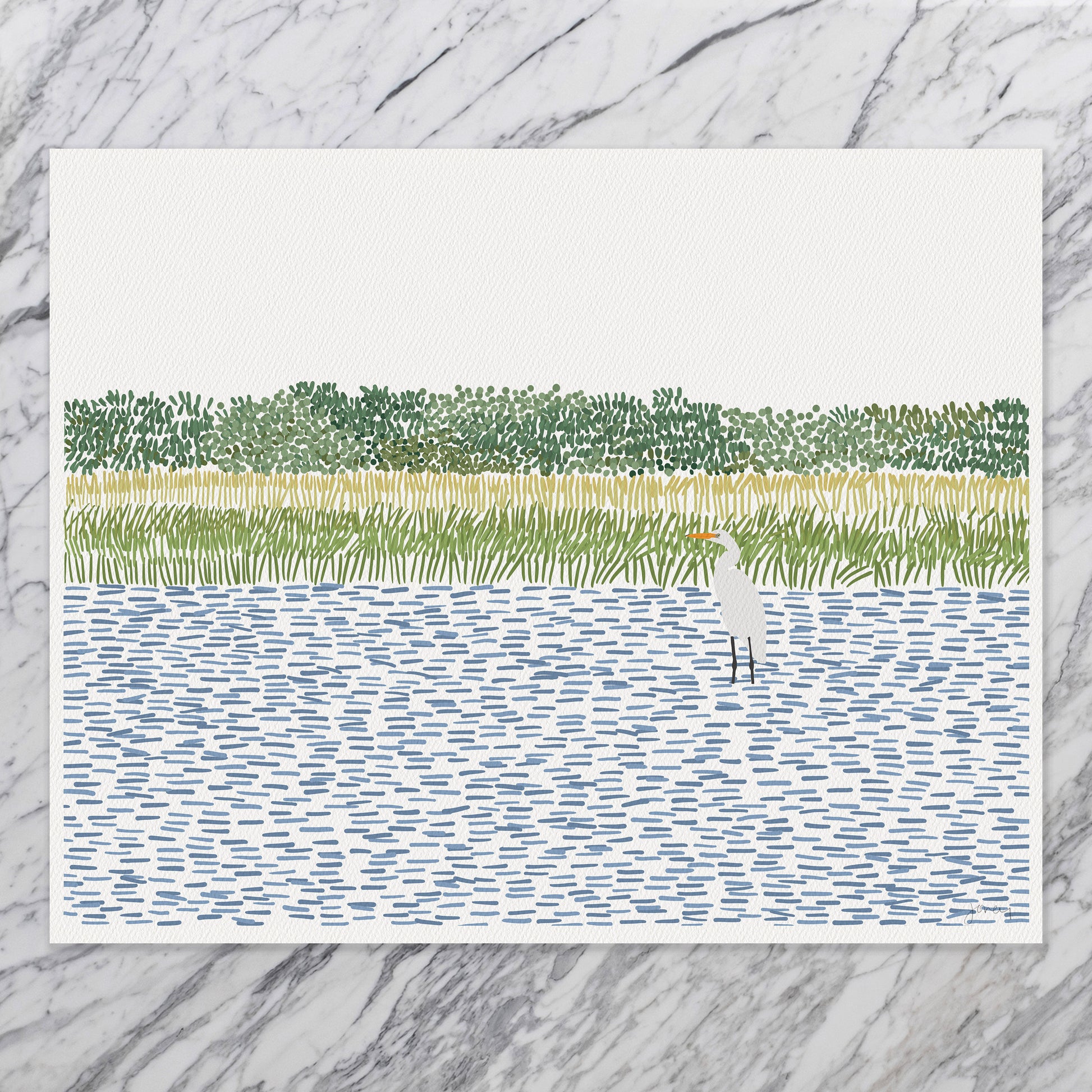 Invite the serene beauty of the wetlands into your home with our "Egret in Wetlands" art print, a timeless addition to any coastal-themed decor.