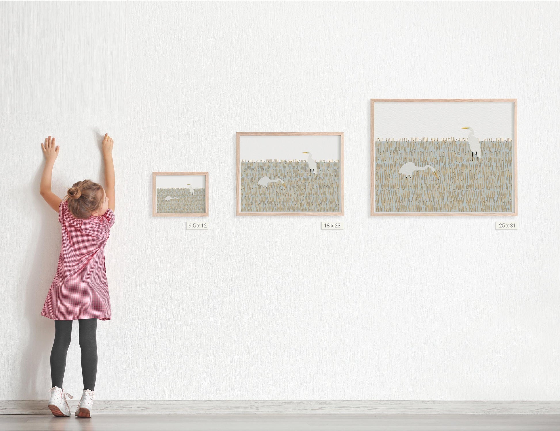 Bring the calm of the wetlands into your home with my Egrets in Winter Wetlands art print—an inspired addition to your modern bird or nature-themed collection.
