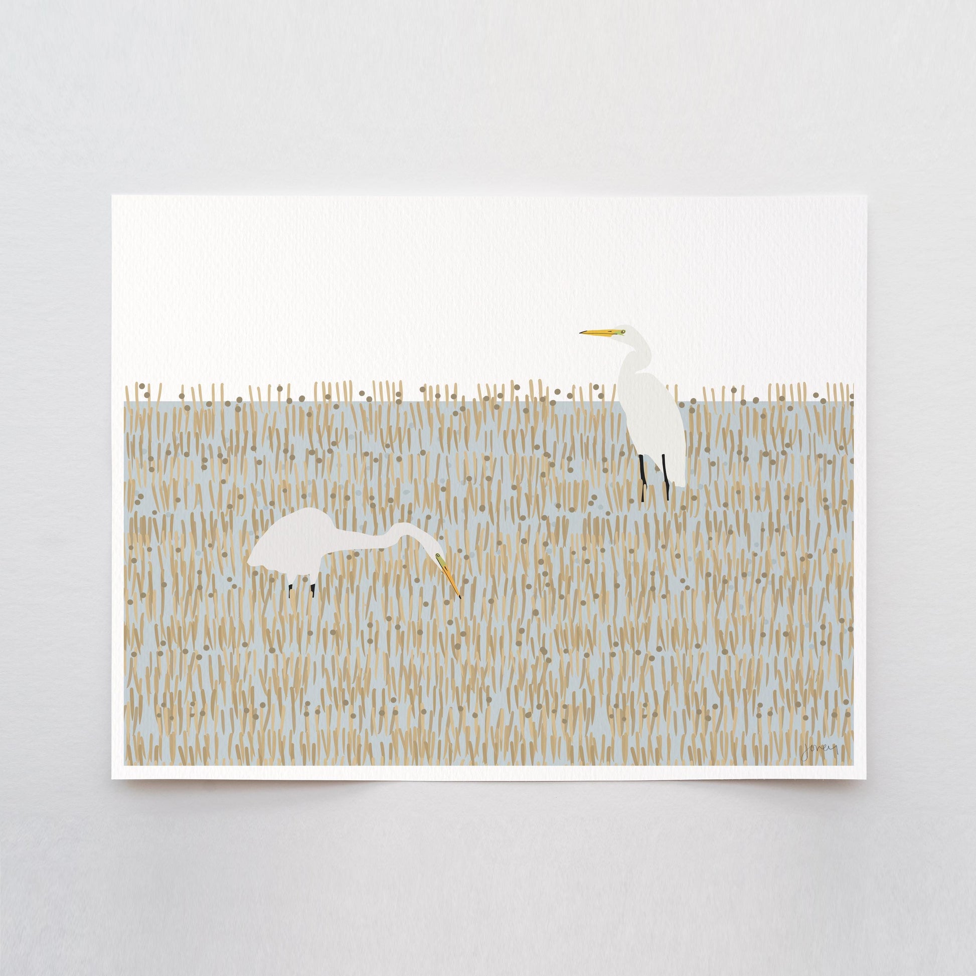 Egrets in Winter Marsh Art Print - Unframed or Framed - 250329