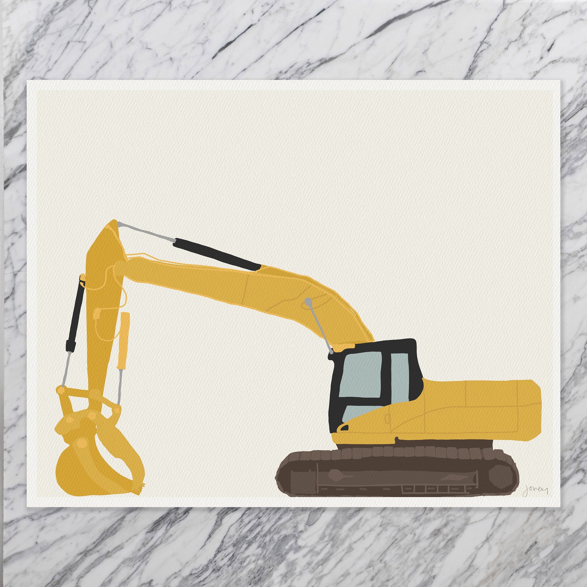 Printed on premium archival paper, this art print vividly brings out the details and bold hues of the excavator. Each print is meticulously crafted, personally signed, and expertly printed by me, ensuring its authenticity and adding a personal touch to your collection.