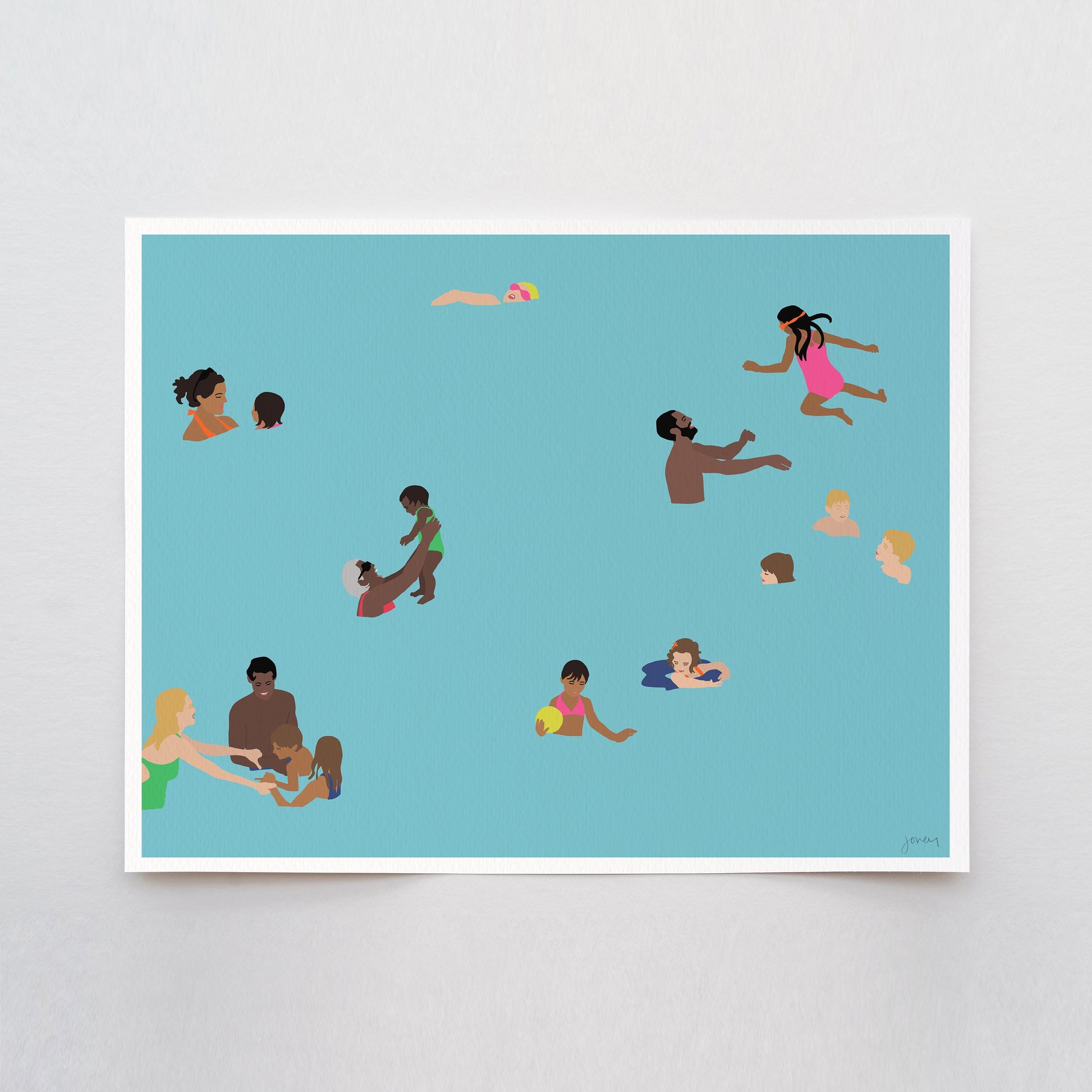 Celebrate the carefree spirit of summer and the joy of family moments through this delightful "Family Swimming Art Print." Perfect for those who relish the memories of poolside fun and anyone seeking to add a touch of summer's vibrancy to their space.
