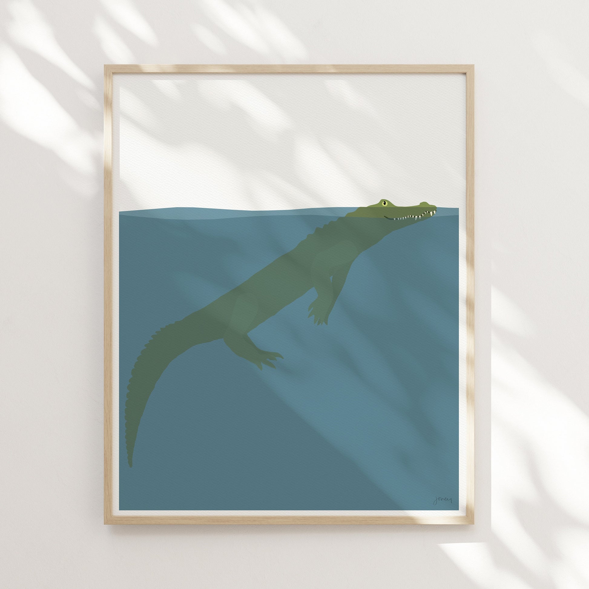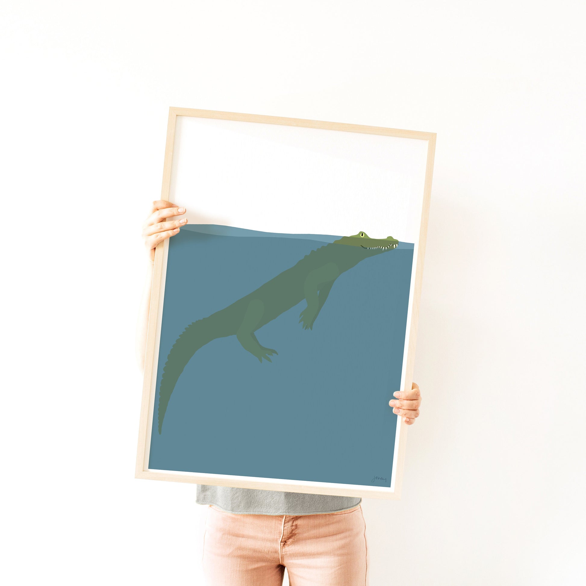 Invite the awe-inspiring presence of alligators into your home with my "Floating Baby Alligator" art print, a bold statement piece for any wall.