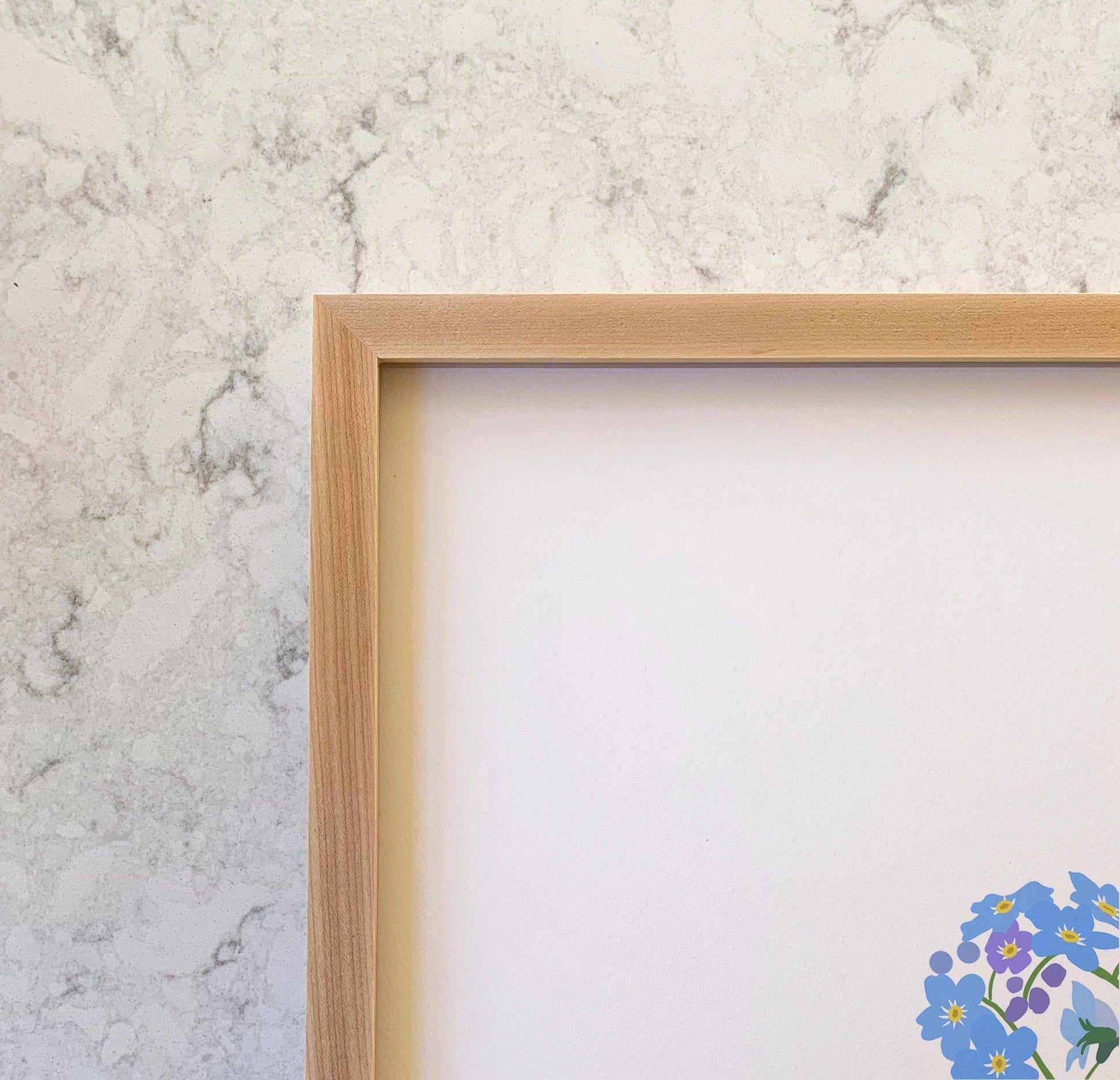 Choose between framed or unframed options. Our selection of frames, crafted from sustainably sourced solid maple, complements the delicate nature of the artwork and arrives ready-to-hang. Alternatively, the unframed prints are available in standard sizes, such as 8"x10" and 16"x20", allowing you to easily choose your own frame. Should you desire a custom size, please let us know, and we'll be happy to help.