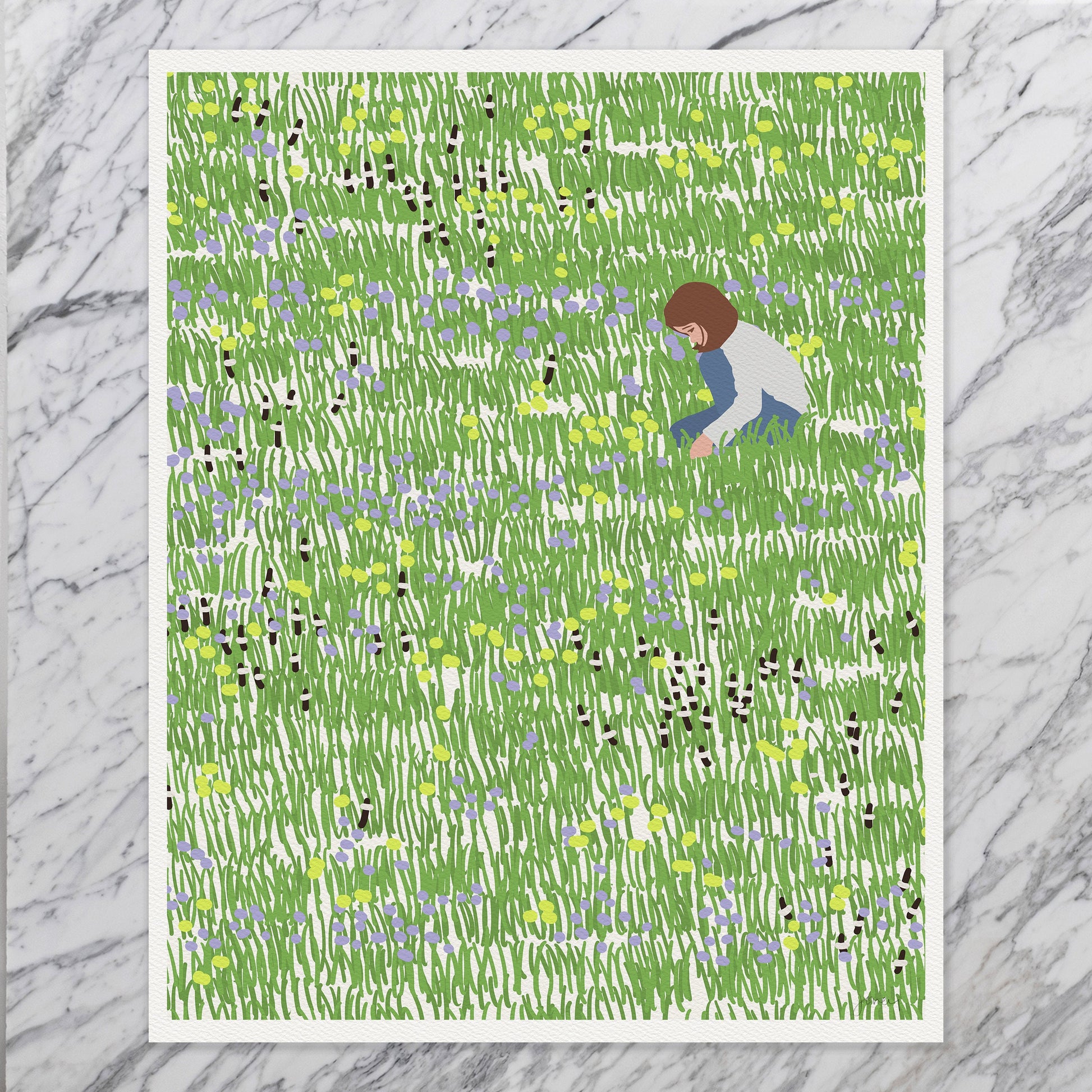 Printed on high-quality archival paper, this art print immortalizes the magic of flower-picking, preserving the innocence and creativity of youth. The vibrant hues and delicate details invite you to relive the charm of a bygone afternoon. Each print is thoughtfully crafted, signed, and printed by me, adding a personal touch to your collection.