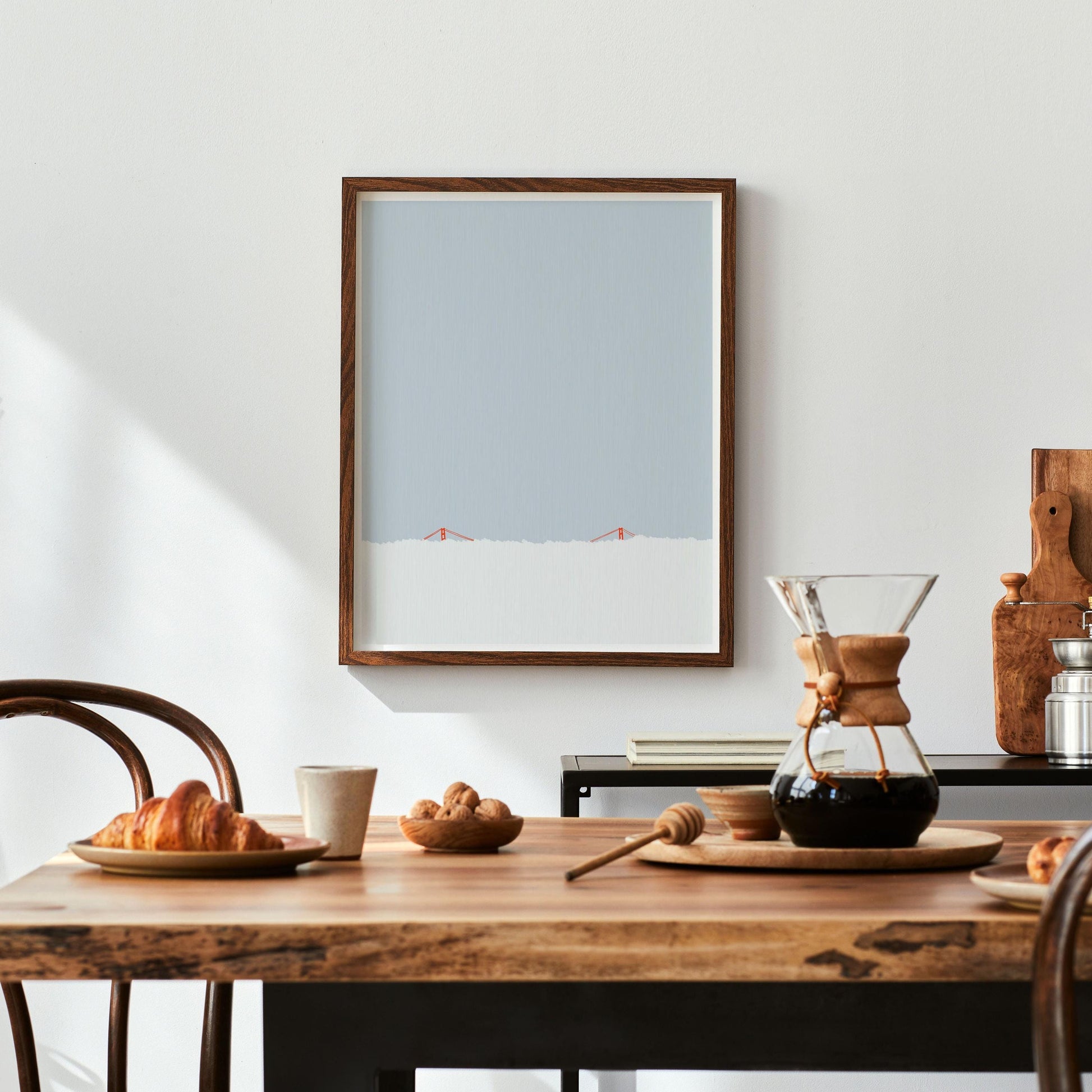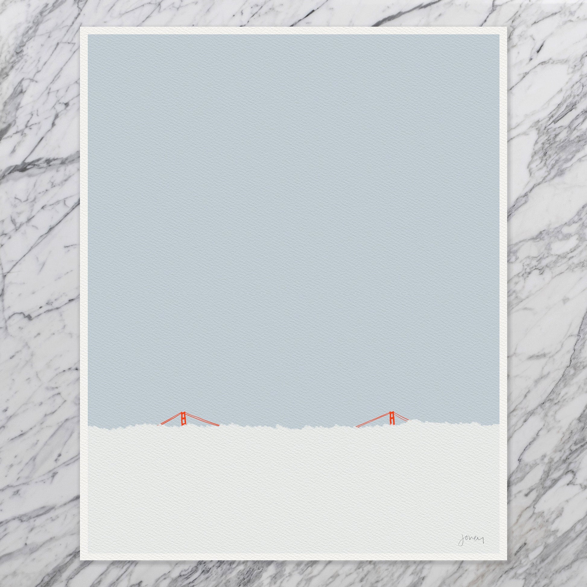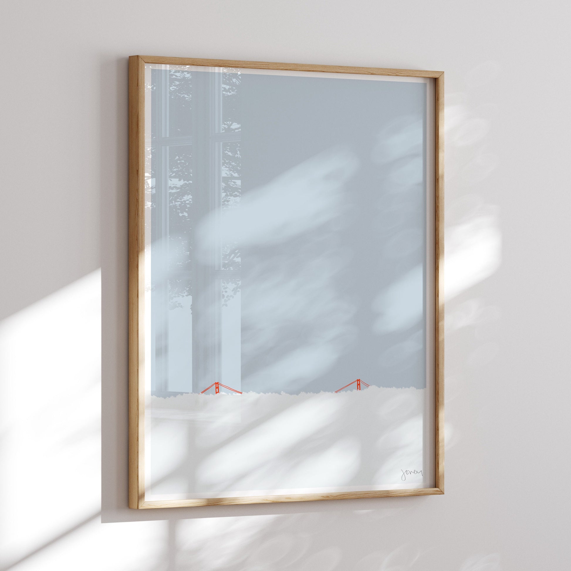 Invite the enchanting beauty of San Francisco into your home with our "Golden Gate Bridge in Fog" art print, a timeless addition to any wall.