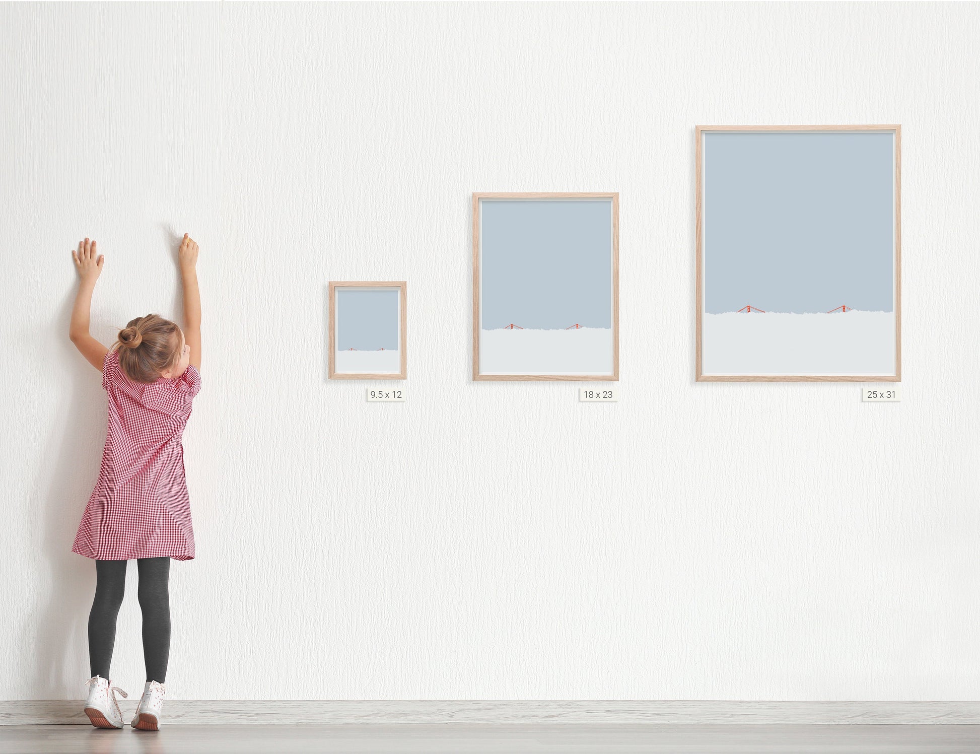 Choose between framed or unframed art. Our carefully selected frames, made from sustainably sourced solid maple, arrive ready to hang and beautifully complement the artwork. Alternatively, unframed prints are available in standard sizes, such as 8"x10" and 16"x20", allowing you to choose your own frame. Custom sizes are also available upon request.