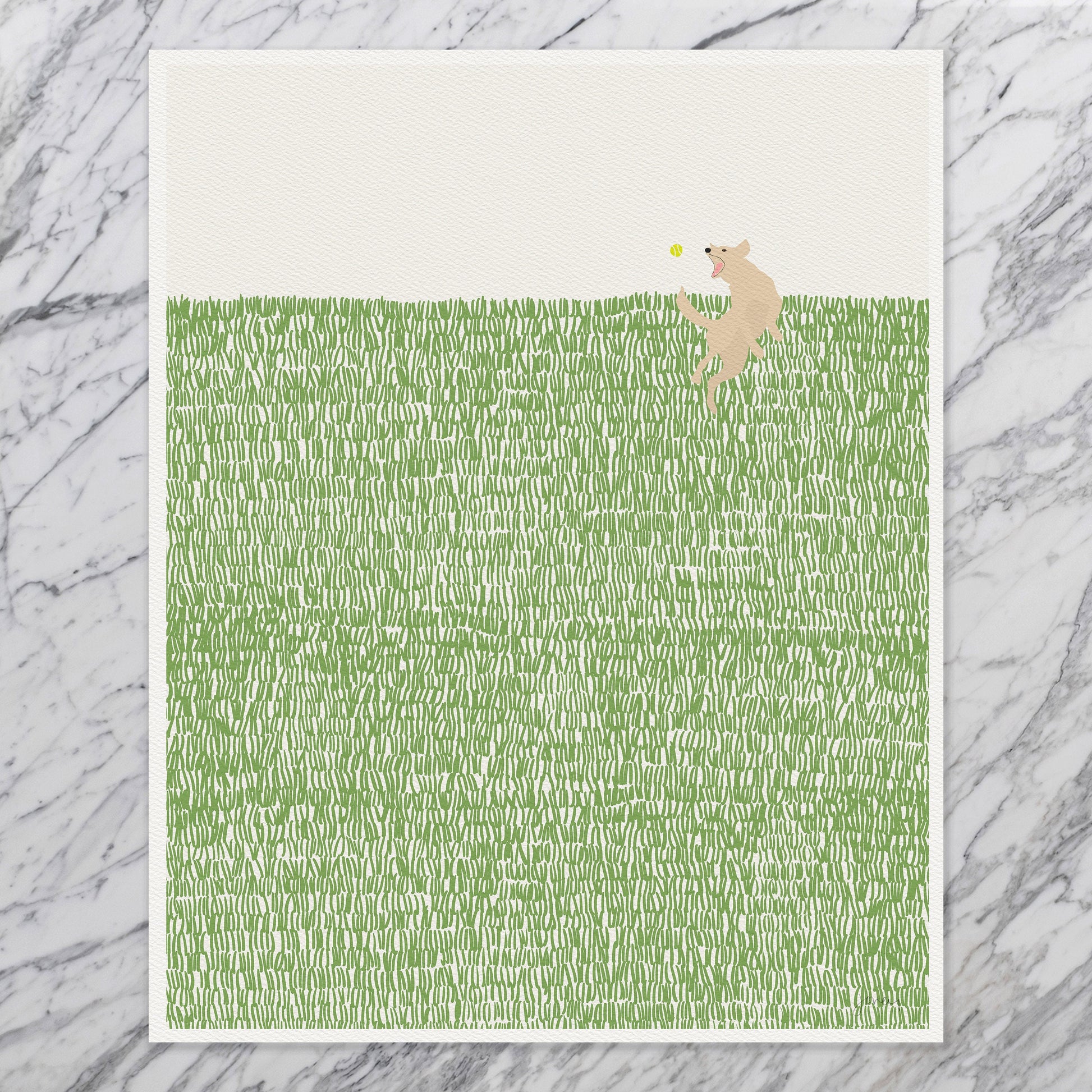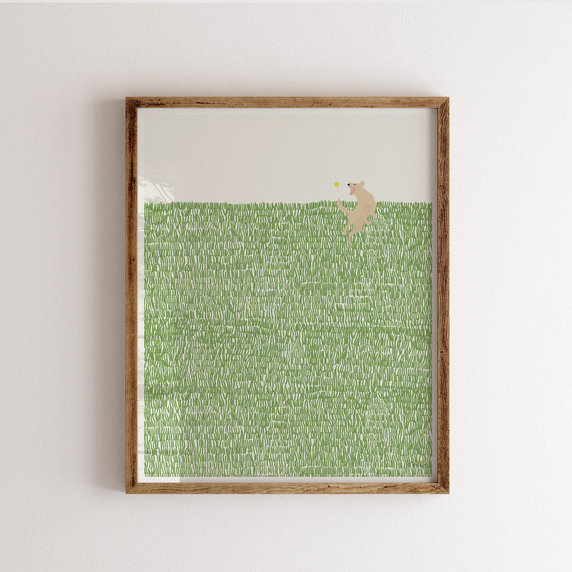 Celebrate the playful spirit of golden retrievers with my "Golden Retriever in the Grass" art print. This heartwarming piece captures the joy and energy of a golden retriever frolicking in the grass, bringing a sense of happiness and warmth to your space.