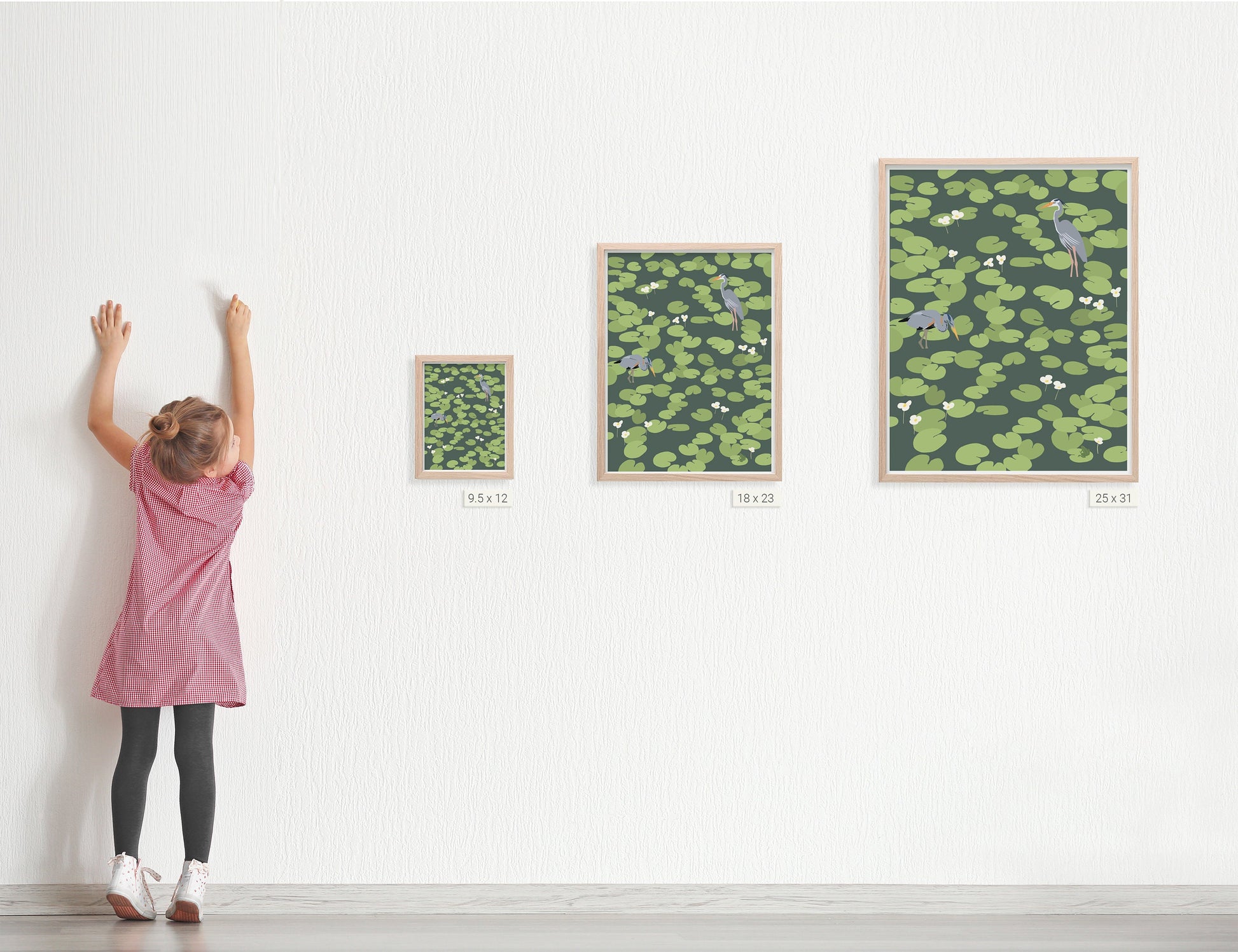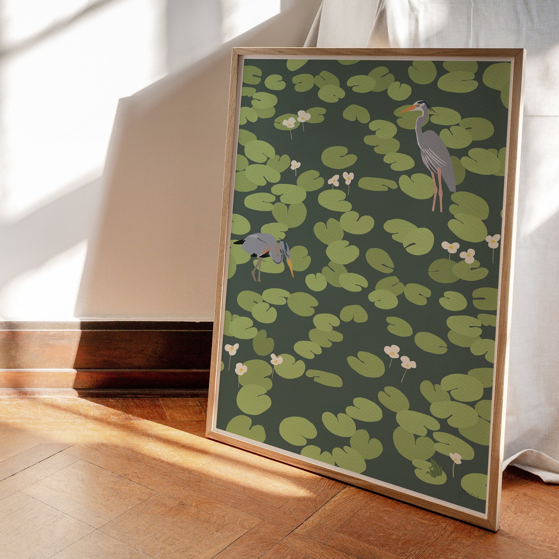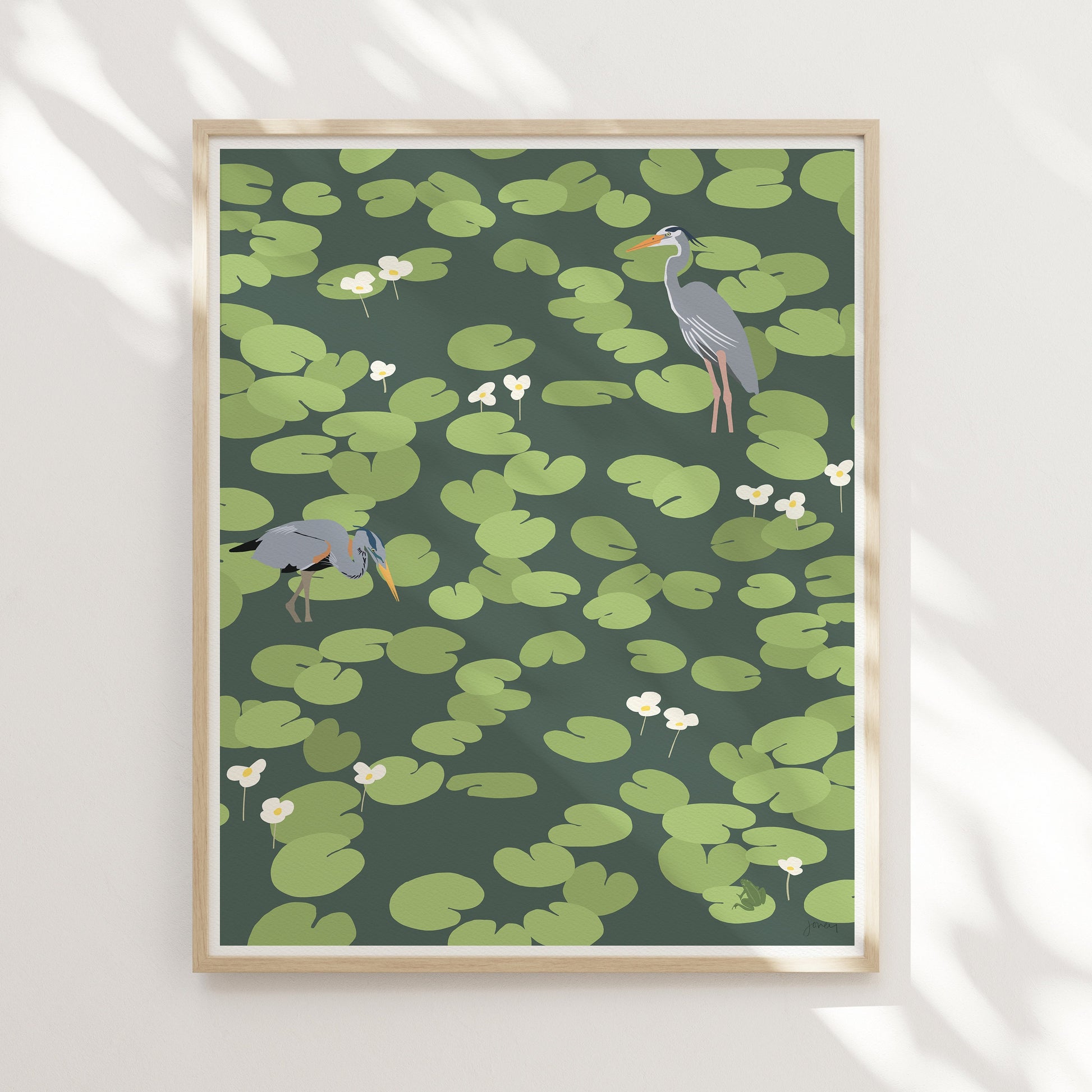 Embrace the tranquil beauty of nature with my "Great Blue Heron" art print. This piece transports you to the serenity of a lily pad-filled wetland, where the majestic heron reigns supreme.